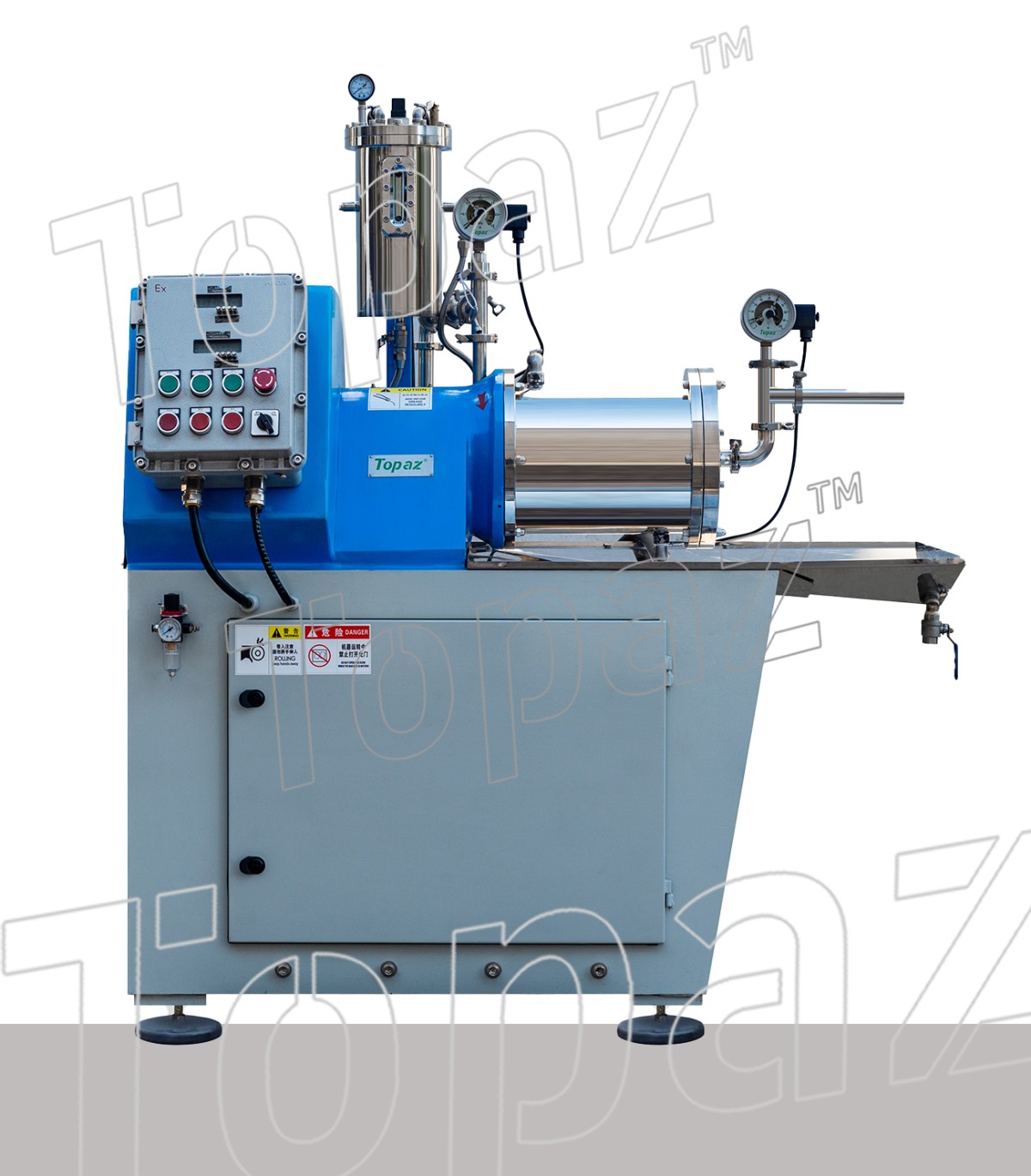 拓帕旗下的TOPAZ纳米砂磨机HNM系列循环研磨系统适用于各个领域。拓帕销棒纳米砂磨机可以成熟使用的研磨珠直径达到0.1mm,可以快速达到高产量和进入纳米细度范围。细度可达到D50<30nm。