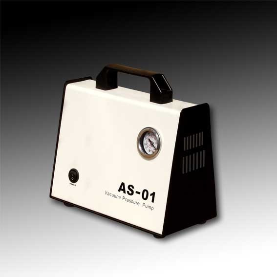 无油隔膜真空泵是一种无油,干式运行的真空泵,正负压两用。工作原理是通过皮膜的往复拉伸-压缩,造成隔膜室容积发生变化,再结合单向阀切换气路,完成抽取真空的功能。隔膜真空泵,设计先进,工作效率高,使用寿命长,是集高新技术于一体的换代产品。除适用于循环水式真空泵和旋片式真空泵的使用场合外,还用于医疗医药产品分析、精细化工、生化制药、食品检验、刑侦技术等领域,是为精密色谱仪器配套的产品,也是实验室常用的装备之一。安全可靠,使用方便。 技术参数: 型 号:AS-01
