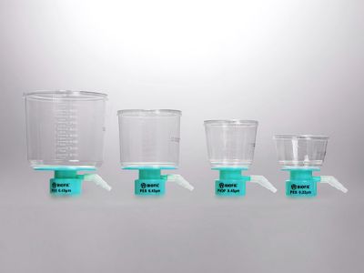 利用真空泵提供压力差,用于组织培养液和其他实验室流体溶液的大量过滤,样品处理量可达数升,过滤后的样品可直接以无菌的收集瓶保存,可搭配洁特(BIOFIL)的接收瓶使用。过滤器上杯包含上杯盖,上杯,连接器。 膜孔径: 0.10µm 0.22µm 0.45µm 膜类型:MCE NYLON PVDF CA PES PES Express 快流速 上杯容量:150mL 250mL 500mL 1000mL