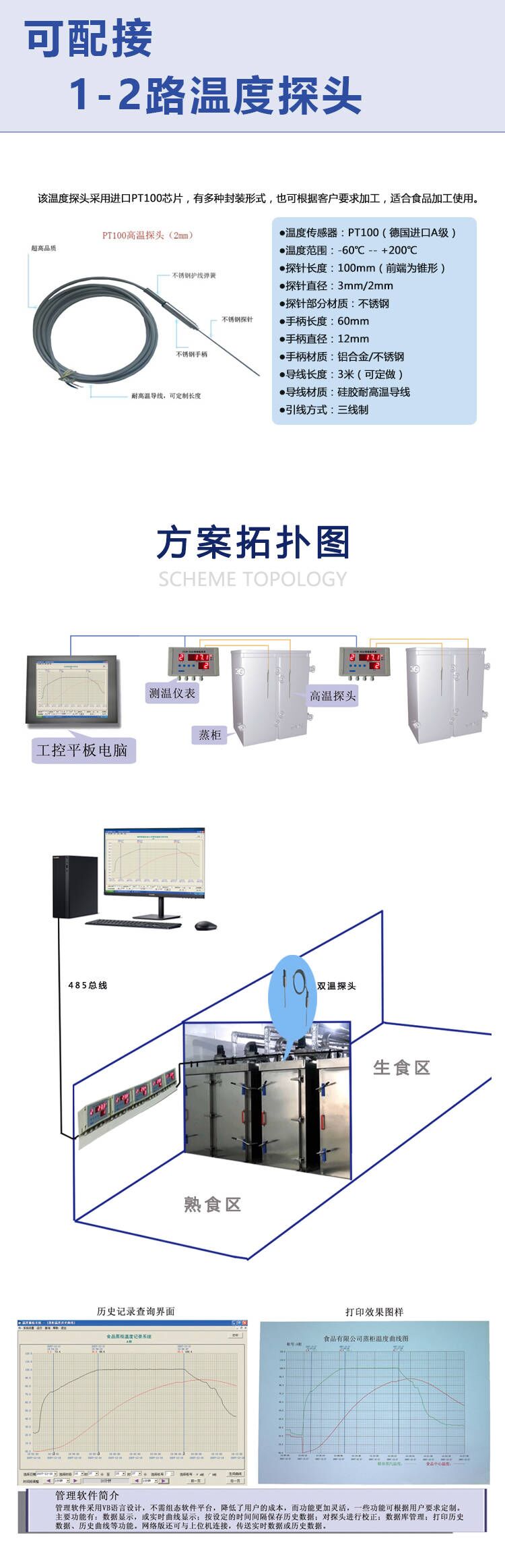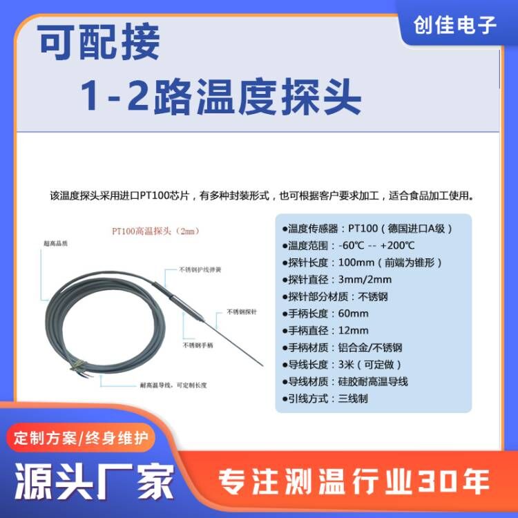 CYCW-302A型智能温度表,是一款支持无线传输的多点温度测量仪表。采用防水防潮外壳,适用于食品加工、冷藏库、保鲜库、医药、农业大棚等行业。尤其是蒸锅蒸柜高温蒸汽多点测量温度,控制温度。 功能特点: 1、采用ABS工程塑料防水外壳,具有较佳的防水防潮性能。 2、通信方式多样化,可选485通信、无线ZIGBEE通信。 3、可接入1-2个PT100温度探头,测量精度高。 4、7位0.8寸数码管显示。 5、每个探头都可单独设置上下限。 6、通信协议与我公司数据采集软件配套。也可按用户要求定制协议。 性能指标: ●温度测量范围:-99.9℃~300℃ ●温度测量误差:+/-0.2℃ ●分辨率:温度0.1℃ ●通讯接口:RS485接口 MODBUS RTU ●接入探头数:1-2个 ●报警输出:2路继电器开关(可选) ●电源电压:180V~240V ●环境温度:-20℃~60℃ ●外型尺寸:200mm×120mm×60mm |