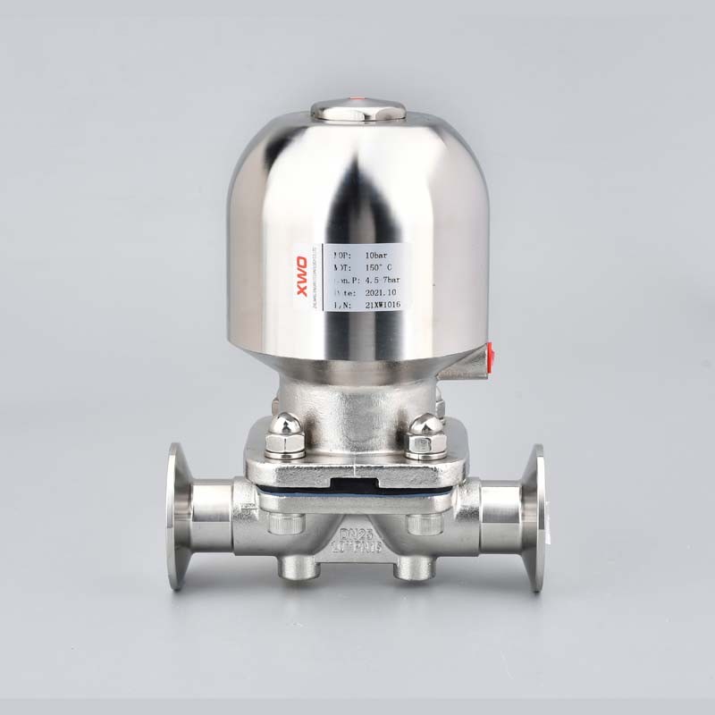 卫生级气动不锈钢隔膜阀由隔膜阀和气动执行机构两部分组成。隔膜阀部分的阀体采用不锈钢材质,如316L不锈钢等,隔膜通常采用耐腐蚀的材料如聚四氟乙烯。气动执行机构则以压缩空气为动力,实现对阀门的控制操作。