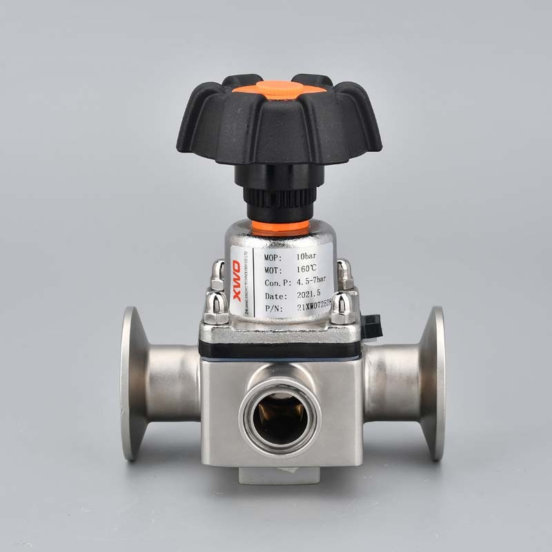 卫生级三通隔膜阀可由驱动装置进行遥控或通过手柄进行手动操作,驱动装置有三种标准:常闭形、常开型及气气型(手动型也有提及).
