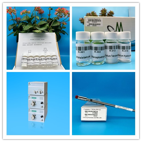 康诺YS-CB-001氨基甲酸酯类农药残留测定用衍生试剂包 氨基甲酸酯类农药残留测定用衍生试剂包(P/N:YS-CB-001): R312:OPA稀释液(粉末) R315:水解液(固体颗粒) R301:OPA R302:巯基乙醇 建议配套: 色谱柱(P/N: C42545):氨基甲酸酯柱Comatex C18-CB,5u,250*4.6 保护柱(P/N:600220):C18保护柱组件(包括柱芯C18/3个)