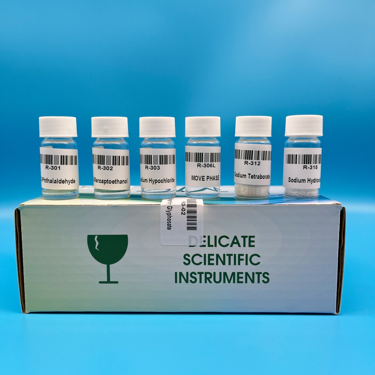 美国康诺公司是提供柱后衍生装置,柱后衍生化学试剂、色谱柱、分析方法等柱后衍生分析整体解决方案的机构。美国康诺的柱后衍生在环境水质、食品农产品农残、药品检测和化妆品中游离甲醛检测等领域具有应用。 R300-02草甘膦农药残留测定用衍生试剂包包含: R306L:流动相 R312:OPA稀释液(粉末) R315:水解液(固体颗粒) R301:OPA R302:巯基乙醇 R303:氧化试剂 1套(包含以上试剂) 使用康诺R300-02草甘膦农残检测衍生试剂包 可使用阳离子(SCX)色谱柱或阴离子(SAX)色谱柱,让客户有选择的空间。 建议配套: 康诺COM6000PCR柱后衍生系统 康诺Comatex SAX(阴离子)色谱柱,5u,250*4.6 (P/N:A72545) 康诺Comatex SCX(阳离子)色谱柱,5u,250*4.6 (P/N:B72545)