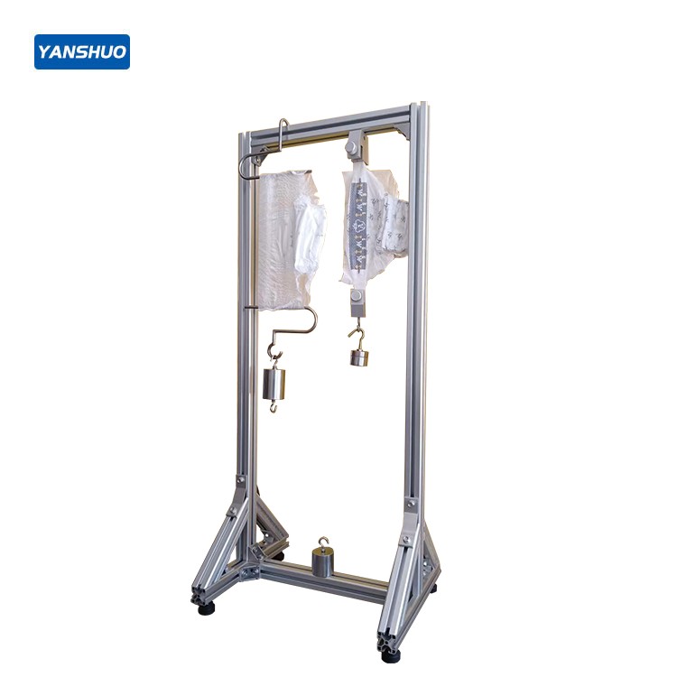 【适用范围】:用于测定卫生裤的腰围。【符合标准】:GB/T39391-2020、GBT33280-2016等标准。【技术参数】:1、砝码加下挂钩总重量:2500g(1000+1500);2、试样夹加配重砝码总重:750g;