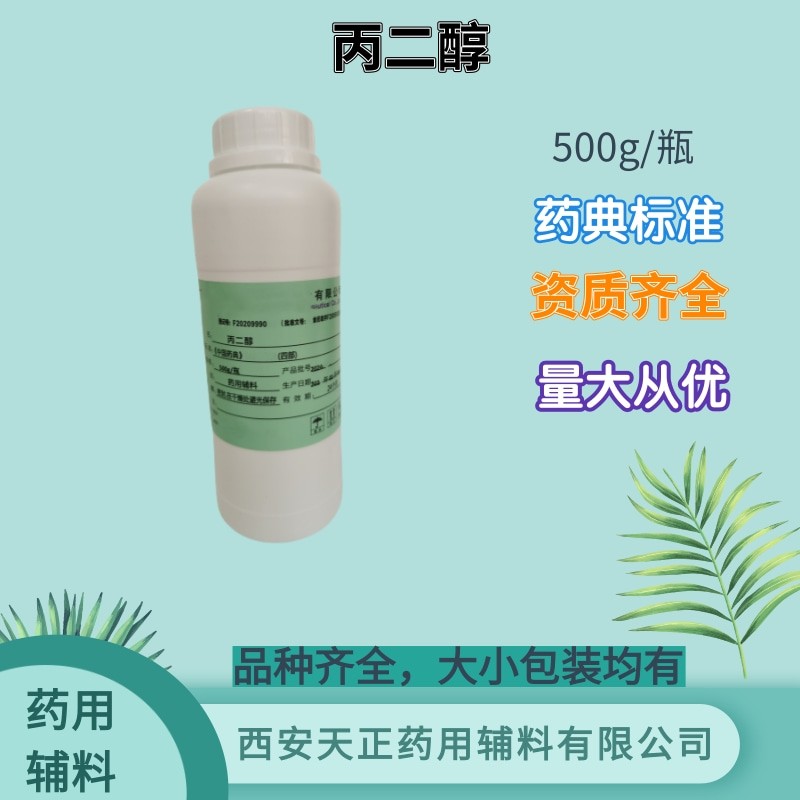 丙二醇Bing'erchunPropylene Glycol C3H8O2 76.09 [57-55-6] 本品为1,2-丙二醇。含C3H8O2不得少于99.5%。 【性状】本品为无色澄清的黏稠液体;无臭;有引湿性。 【类别】药用辅料,溶剂和增塑剂等。 【贮藏】密封,在干燥处避光保存。