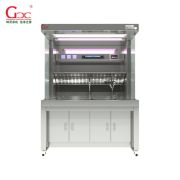 垂直流超净工作台的工作原理如下: 空气吸入与初滤:工作台内部的高效离心式风机运转,产生负压,使周围空气从进风口被吸入。进风口处通常设有初过滤器,对吸入的空气进行初步过滤,拦截大颗粒的尘埃、毛发等污染物,初步净化空气. 高效过滤:经过初滤的空气随后进入高效过滤器。高效过滤器一般采用超薄型铝框无隔板过滤器等,其过滤精度极高,对于粒径≥0.3um 的尘埃,过滤效率可达 99.99% 及以上,能有效去除空气中的微小颗粒、细菌、病毒等,确保送出的空气达到高洁净度标准. 垂直气流送出:经过高效过滤后的洁净空气,在风机的推动下,以垂直方向从上至下均匀地通过工作区域。这种垂直单向流的设计,使得洁净空气能够持续稳定地覆盖整个操作台面,有效排除工作区原来的空气,将尘埃颗粒和生物颗粒等污染物带走,防止其在工作区域积聚,从而为操作提供一个无菌、无尘的高洁净环境. 气流速度控制:通过调节风机的运行速度或其他空气流量控制装置,可以实现适当的空气流速。合适的空气流速既能保证工作区域内的洁净度,又能避免因风速过快对操作产生干扰,如影响酒精灯火焰、吹散轻巧物品等,同时也有助于维持工作区域与外部环境之间的压力差,进一步防止外部未经净化的空气进入工作区. 循环与排放:从工作区域底部排出的空气,一部分会通过特定的通道被重新吸入风机,进行循环过滤再利用,以节约能源和维持稳定的气流环境;另一部分则会根据设备的设计和使用需求,经过处理后排放到外部环境中,确保工作区域内的空气始终保持新鲜和洁净. 辅助功能保障:许多垂直流超净工作台还配备了紫外灯系统,在使用前或使用后,可以开启紫外灯对工作区域进行杀菌消毒,进一步降低微生物污染的风险;同时,一些超净工作台还具有良好的密封性能和静电消除装置等,以防止外部灰尘和静电对工作区域的影响,更好地保障超净环境的稳定性和可靠性. |