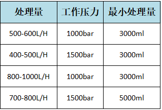 产品参数: 工作压力:0-30000PSI 最大处理量:300L/h 最小样品量:3L 生产型高压均质机 产品参数: 工作压力:0-30000PSI 最大处理量:300L/h 最小样品量:3L 泵动力源:380V,50Hz,22.0kW 产品特点: 良好的均质重现性和稳定性 可选配温度控制系统 产品通道采用特殊的锥面密封,方便拆卸,无易损垫片,无死角,完全避免二次污染 机体组件由医药级不锈钢制成。耐酸、耐碱、耐高温、防腐蚀、耐磨性强 适用于脂肪乳,脂质体,脂质纳米粒和纳米混悬剂等产品 可进行在线清洗和在位灭菌。产品全程可以以SIP高压灭菌或蒸汽灭菌,包括所有过湿部件。 产品符合卫生级符合GMP标准