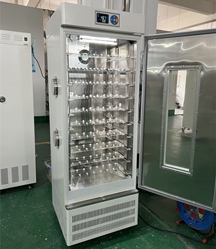 电池恒温测试柜专门配套蓝电或新威锂电池充放电老化试验使用,主要用作电池测试仪对锂电池类产品的恒压恒流或充放电的测试,可以提供长周期可靠的恒温测试环境。 产品特点 1、 箱体为高压聚氨酯成型,保温性能优异,坚固牢靠。 2、箱体外部为优质冷轧钢板喷塑处理,内部采用拉丝不锈钢内胆,箱内搁板间距可调。 3、采用品牌压缩机,采用环保无氟制冷剂(R134a),高效率、低能耗、节能环保。 4、微电脑PID控制,控温精确可靠,波动少,带定时功能,0-9999分钟的定时时间。 5、SMOOTH整体风道均匀系统,温度控制更精准。 6、 独立限温报警系统,双重限温(±4℃及上限70℃)保护,超过限制温度即自动中断。 7、预留打印机或RS485接口,可连接打印机和计算机,记录温度变化参数。(选配) 8、箱体配有进行线孔,可供外接测试信号线使用。 9、自诊断功能,故障全程自动监控,故障代码直观指示。 10、配有电池专用托架。 产品参数