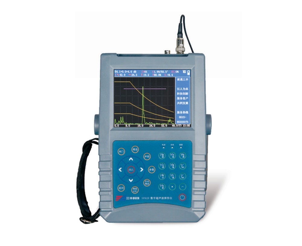 独特的卫星键分布,实现单手握持操作; 专用参数设置界面,方便用户快速设置。操作简洁,实用易学; 预置50组独立探伤通道,探伤工艺和标准自动生成,可自由设置各行业探伤工艺标准,现场探伤无需携带试块,满足更多需求; 根据环境选择背景色,亮度可自由设定,强光、弱光环境,清晰显示; 增益、声程、闸门、通道的调节不仅可以导航键调节,更是国内首创数字键直接输入,探伤更加快捷高效; 高质量的电路系统,性能稳定可靠; 超高速采样,使回波显示保真,定位、定量更准确; 具有直探头、斜探头、双晶探头及穿透四种探伤工作方式; 缺陷回波参数(距离、垂直、水平、波幅、dB或当量孔径值)实时显示; 波形颜色显示不同,区分一次波、二次波; 实用的AVG曲线,自动换算缺陷Φ值; 具有自动增益、峰值记忆、回波包络、门内报警、DAC门、门内展宽、实心波显示等功能;高速USB接口,实现数据快速传输; 实时动态记录检测波形、数据,无需主机与电脑连接后安装相关驱动,只需通过U盘便将仪器内存储波形、数据快速导出; 超低功耗设计,连续使用10小时以上。 主要技术参数:
