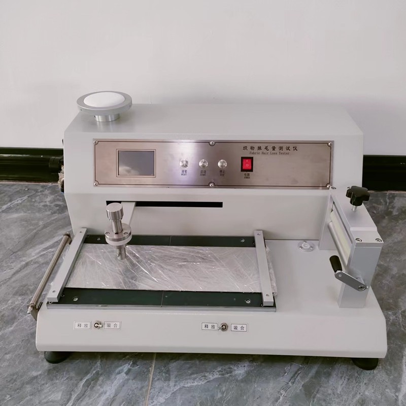 仪器测试原理: 将试样平铺固定在夹持器.上,使固定在摩擦头上的湿磨料在规定负荷下,以一定动程在试样上做往复摩擦运动至规定的次数。然后与样照比较,对磨料上粘附纤维的程度进行视觉评级,以此表征试样掉毛程度。为各工厂、科研院所、大专院校、运输商检、各省市纺织测试仪器。 仪器的特点: 触屏控制器,摩擦次数任意设置; 触屏内按钮备份机械按键,同时使用,方便快捷; 试样安装采用气动夹持器,方便快捷; 带轧车用于调节磨料含水率,轧余率可调节; 符合标准:GB/T40270-2021 附录A 主要技术性能: 1. 摩擦头行程:(200±2)mm; 2. 往复速度:30次/min; 3. 圆形摩擦头直径:(90±1)mm; 4. 摩擦头固定夹环外径:(120±0.5)mm,内径:(90±0.5)mm 5. 试验垫片直径(113±0.5)mm; 6. 泡沫塑料垫片:直径为105mm,厚度为8mm,单位面积质量约270g/m²; 7. 摩擦负荷总质量:(595±7)g 8. 砂纸:600目氧化铝耐水洗砂纸 9. 电源:AC220V 50Hz |