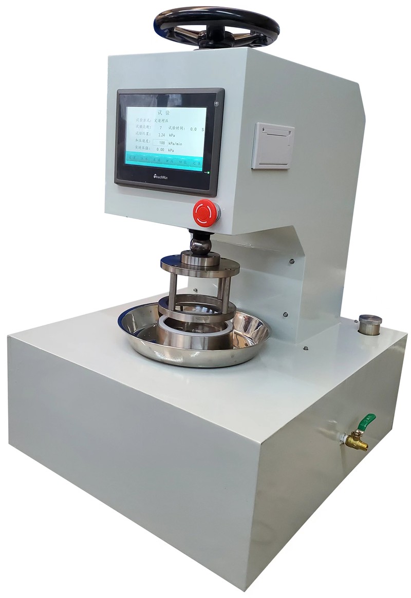 用途: 用于紧密织物,如帆布、油布、帐篷布,苫布,非织造布及防雨服装布,涂层织物等抗渗水性能测试。 适用标准: GB/T4744-1997, ISO811, FZ/T01004-91 特点: ● 本仪器微机控制,具有五大测试功能,圆弧外形美观大方。 ● 采用宽屏液晶显示器,全中文菜单,操作简单方便。 ● 选用高精度的压力传感器,测结结果准确稳定,重现性好。 ● 配有内置水箱,并有按键有效提示,故障自检等功能。 主要指标: