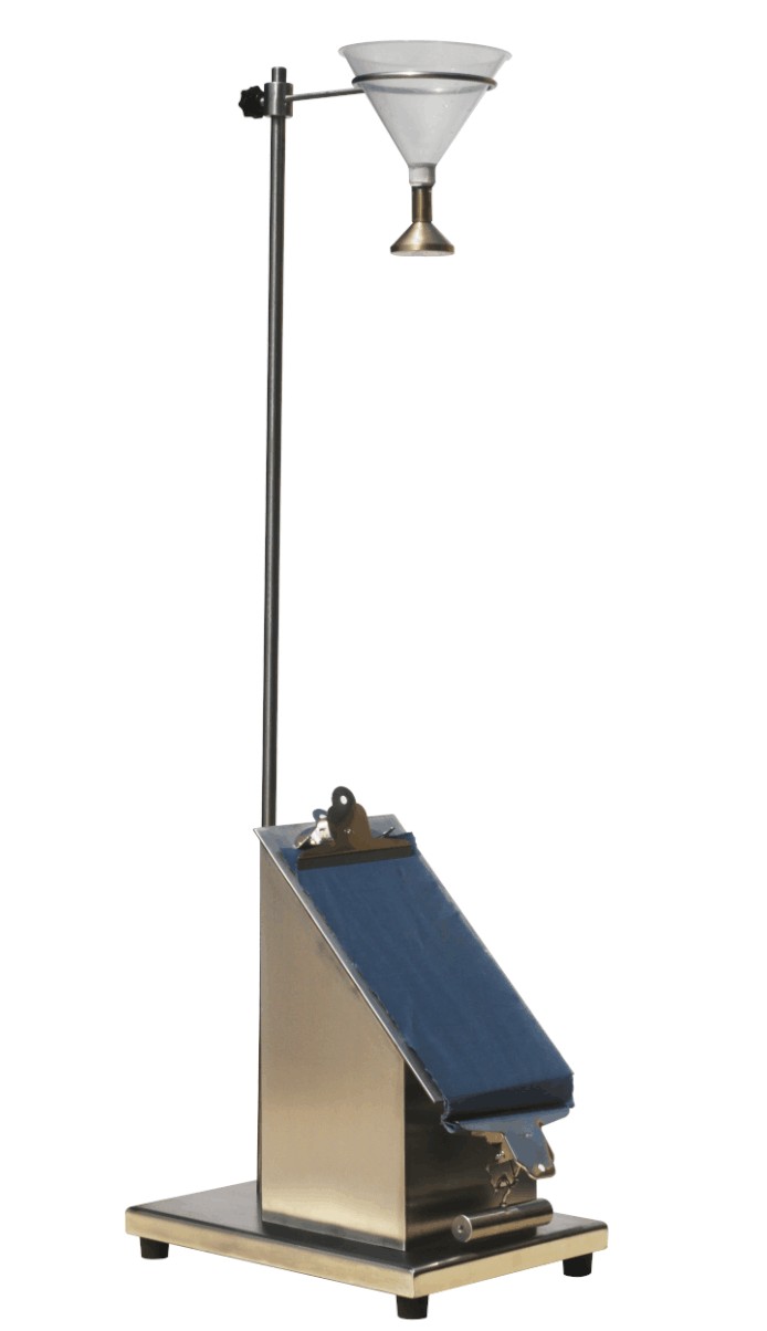 概述:本仪器用于测定在低冲击条件下织物抗渗水性能,可用于预测服用织物的抗淋雨渗透性能,不适用于在一定张力下无法抻平的织物。 适用标准: GBT 33732-2017 纺织品 抗渗水性的测定 冲击渗透试验 GBT 24218.17-2017 纺织品 非织造布试验方法 第17部分:抗渗水性的测定(喷淋冲击法) 主要技术指标: 1) 漏斗高度610mm±10mm 2) 滑漏及流失台倾角为45°; 3) 喷嘴内径 45.4mm,25个孔,0.99mm±0.005mm; |