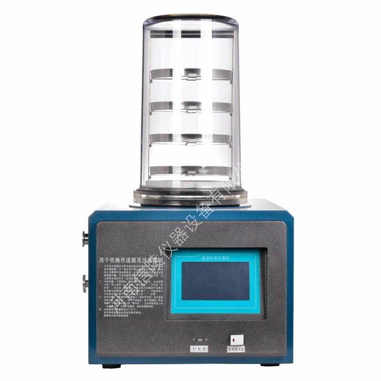 优势功能特点: 1. 制冷迅速冷阱内壁温度均匀,良好的气体导流技术,捕水效果好; 2. 采用进口品牌压缩机,单机混合环保制冷技术; 3. 配置冷阱样品预冻功能,无需再配套超低温冰箱或用液氮处理; 4. 7寸彩色液晶触摸屏,人机交互界面友好,配置锁屏功能,可选配APP远程控制; 5. 显示屏主界面简洁清晰,显示冷阱温度、真空度、样品温度、运行时间等参数,操作简单直接; 6. 具有查看、导出、删除功能,冻干数据自动保存,防止数据丢失,支持USB数据导出; 7. 支持安瓿瓶、西林瓶、玻璃烧瓶、培养皿和物料盘等的冻干; 8. 冷阱具有前期样品独立预冻功能; 9. 标配一台真空泵,噪音小; 10. 配备防腐蚀真空连接管,附带国际标准KF真空快接卡箍; 11. 冻干参数:冷阱温度、样品温度、真空度、运行时间、隔板温度等一目了然; 12. 工业级嵌入式操作系统,操作响应速度快,存储数据量大; 13. 仪器设计结构紧凑,体积小巧,便于摆放和搬运; 14. 冻干数据自动保存,实时查看,历史复现,冻干过程清晰可控; 15. 支持储存多组冻干曲线, U盘拷贝,电脑上位机浏览,支持打印; 16. 无色透明一次注塑成型聚碳干燥室,耐腐蚀、不易碎、无粘接、透明度高、密闭性强、样品清楚直观,可观察冻干的全过程; 17. 冷阱腔体、物料盘架均为卫生级不锈钢材料,冷阱内无盘管,光洁耐腐蚀且易清洁,具有物料预冻功能; 18. 冷阱干燥室采用耐高压、耐低温航空有机玻璃材料,可观察物料冻干全过程;
