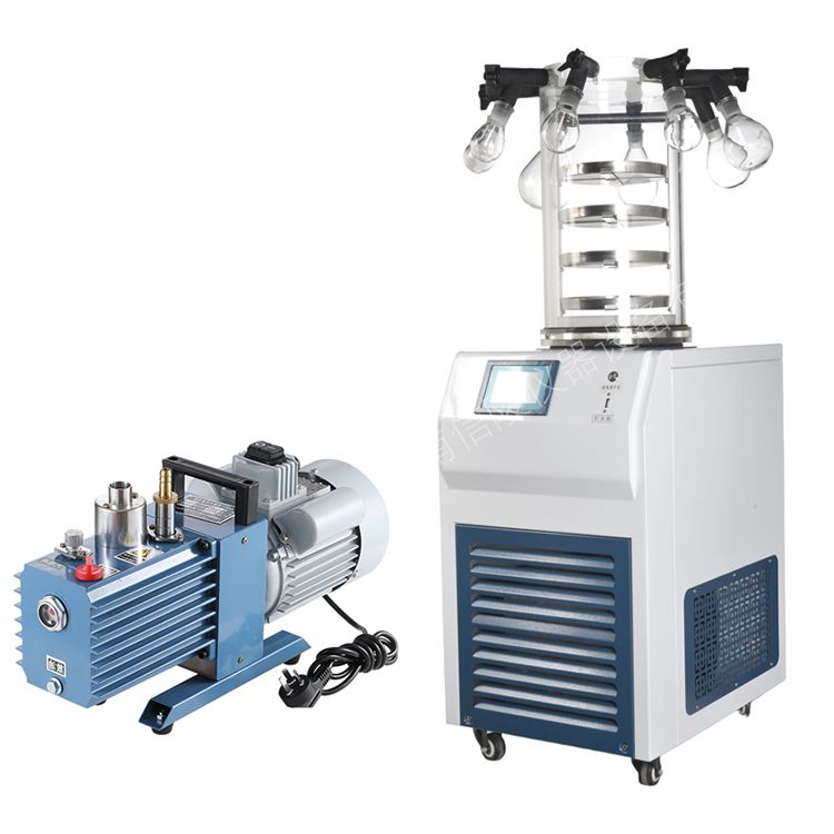 真空泵加油方法及保养事项: 1.将配套的泵油通过真空泵加油孔倒入真空泵内,并注意泵油线达到油镜的三分之二处即可; 2.真空泵运行300小时后可换新油(必须先把旧油倒出来),以后每运行1000小时再换新油(特殊情况可参考第3点); 3.若有以下问题应立即换油:真空度下降很慢;真空度达不到之前的低值;泵油的颜色过于混浊暗淡。 小型冷冻干燥机基本工作流程: 1.预冻物料:将物料中的液态水分全部冻成冰晶; 2.升华干燥:打开真空泵让物料处于真空状态,若发现物料表面有起泡现象,说明没有预冻合格,必须重新预冻;运行预设好的冻干工艺,让机器自动运行整个冻干工艺; 3.结束干燥:先打开真空泵让干燥室内压力与外界平衡,再关掉真空泵,取出干品; 4.将冷阱里捕获的水融化后通过放水阀流出,并擦拭干燥机器内壁,保证没有液体留在机器内。 |