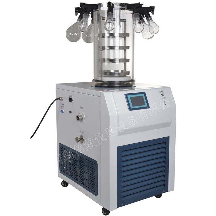 LGJ-12多歧管普通型冷冻干燥机详细介绍: 具有多歧管真空系统,支持8种样品并行处理;操作人员可在冻干瓶完成旋冻工艺后直接进行真空挂载,通过阀门开关即时启动真空抽吸流程。模块化挂载设计支持实时工位增减,显著提升批次处理效率。真空冷冻干燥技术在浓缩液处理中具有优势,尤其适用于热敏性、易氧化或高价值的浓缩液。低温操作,保护活性成分,在极低温度下进行,避免了高温对热敏性成分的破坏,特别适合处理中间体、生物制品、果汁、乳制品等浓缩液。在高真空条件下,氧气含量极低,可有效防止浓缩液中的成分被氧化。真空环境还能避免外界杂质的污染,确保产品的纯度。干燥后的浓缩液水分含量极低,稳定性高,不易发生腐败或降解,延长了产品的保质期。