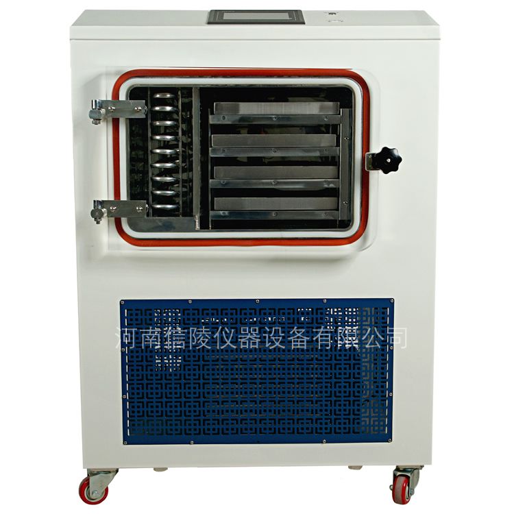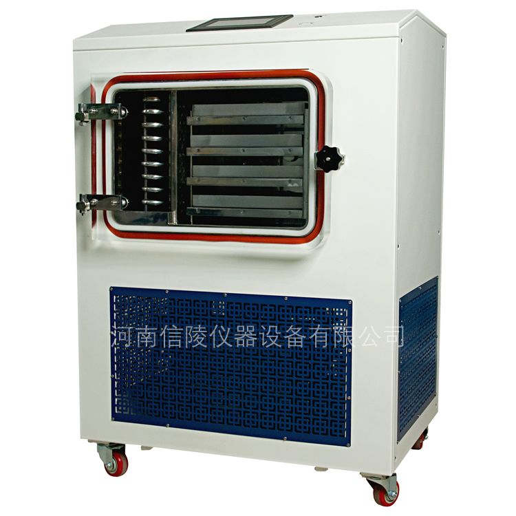 优势功能特点: 1.样品容量与结构:设备的板层面积为0.4平方米,可容纳4升样品(基于10mm厚度计算)。通过增加样品厚度,可进一步提升装载量。设备采用方仓原位真空冻干结构,物料的预冻和干燥在同一空间内完成,操作简单,干燥效果优良。 2.自动化控制:设备具备自动化控制系统,支持冻干工艺的编辑与预设。用户可一键启动冻干程序,设备将自动完成预冻、真空泵启动及升华过程。 3.制冷与控制技术:设备配备进口品牌压缩机,使用环保制冷剂,制冷效率高,节能且使用寿命长,运行噪音低。采用PLC可编程控制器,支持设置上百组冻干工艺配方,每组配方可包含多个控温区段。 4.加热与温度控制:设备配置隔板电加热功能,结合制冷剂循环制冷技术,采用温度模糊控制技术,确保搁板温差小,控温精度高,干燥效果均匀。 5.功能与提示:设备具备终点结束提示功能,当预设的冻干程序完成后,系统将提示用户,用户也可根据需要继续冻干。采用冻干曲线优化控制技术,可在升华和解析干燥阶段精准控制样品升温速率。 6.工艺灵活性:设备支持工艺区段跳转功能,用户可根据需要快速切换至下一个工艺区段。控制系统可存储上百组冻干工艺配方,每组配方包含50个控温区段,显著提升工艺优化效率。 7.冷阱与预冻功能:冷阱采用U型盘管设计,结构紧凑,具备预冻功能,捕冰均匀,捕冰能力强,便于化霜和清洗。 8.校准与智能控制:设备配备传感器校准功能,确保长期使用中测量值的精确性,同时具备传感器标定和智能温度控制功能。采用7英寸液晶工业嵌入式触摸屏和模块化控制器,控制精度高,性能稳定可靠。 9.数据记录与管理:智能化数据记录系统可实时记录并显示冷阱温度、样品温度和真空度曲线。数据可通过USB接口导出,便于在电脑上浏览、打印及进行多种操作,方便工艺优化和干燥效果验证。 10.透明观察与安全:干燥室门采用亚克力材料,无色透明,便于全程观察冻干过程。标配一台国产真空泵,配备KF国际通用接口,可适配进口真空泵。 11.样品监测与安全保护:标配样品温度探头,实时测量并显示样品的实际温度。设备具备整机启动保护功能,只有在所有安全条件满足时,设备才能启动运行。高压压力保护系统可在系统排气压力超过允许值时自动切断冷冻机运行,防止意外事故。 12.用户管理与维护:设备支持设置用户等级和密码,实现分权操作管理。具备实时报警显示及历史报警查询功能,方便故障诊断和设备维护。 13.充气与保质期:充气(放水)阀门采用安全隔膜阀门,可连接惰性气源。干燥完成后可充入惰性气体,延长物料保质期。