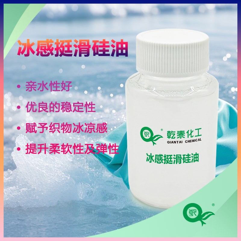 冰感挺滑硅油主要用于面料亲水柔软手感整理,且具有冰凉感,赋予织物良好的亲水性、柔软性、弹性及悬垂性,有高效的表面成膜性、有优异的结合力让织物更松厚、柔软。手感和亲水性相对较好,通透性强,能同时满足棉、人棉、涤棉混纺等织物的手感需求。