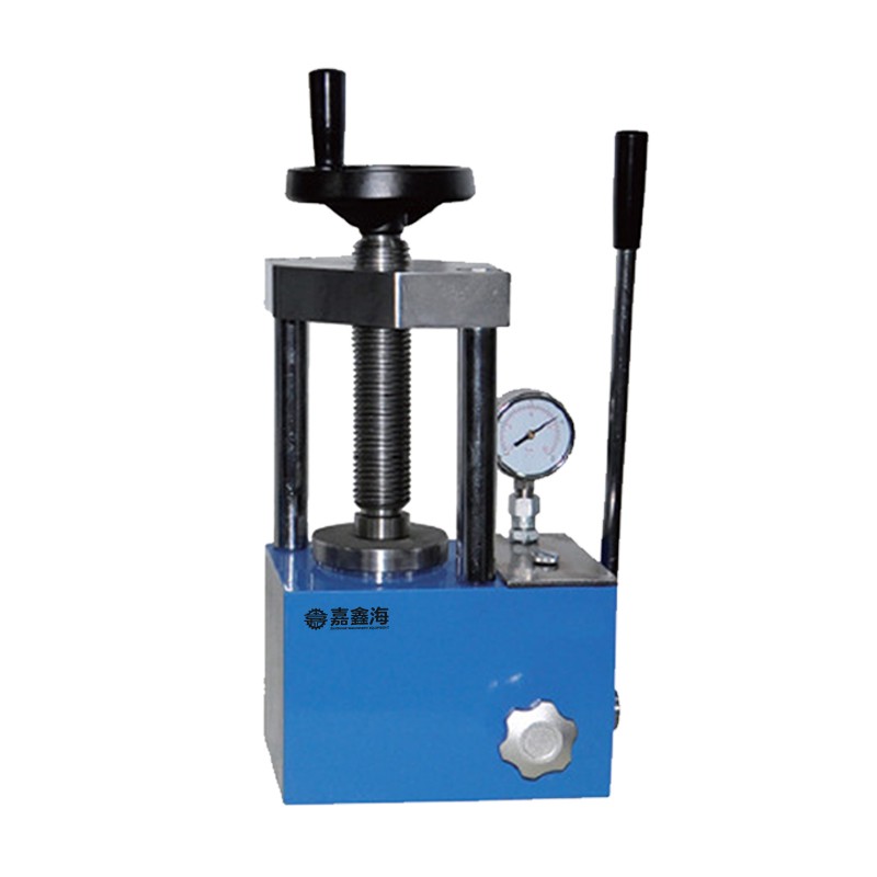 此款压片机可以和钙铁分析仪、傅立叶红外光谱仪(IR)、X射线荧光光谱仪(XRF)等分析测试仪器配套制样使用;现已广泛应用于科研、教学、检测、催化、制药、化工以及新材料研发等各个领域;此外,通过特定的压片模具可将溴化钾(KBr)、氯化钠(NaCl)、硼酸(H3BO3)等各种粉末材料压制成型,并制作出各种各样的试片、柱体、异型体或其他形状进行实验;同时,油压机也适用于其他需要相应压力的工作场所,作为压力机使用,测试各种物体的耐压程度等等,应用非常广泛,可替代同类进口产品。 压片机注意事项: 1、运途中为了避免漏油所以将注油孔螺钉都紧的很紧,但油池密封性很好导致油缸不能吸进去液压油,无法正常上压。正常使用时,需要将螺钉松开一点; 2、加压时候注意,丝杠的螺纹必须全部进入上板,不能只连接几扣。避免丝杠螺纹变形; 3、定期在丝杠处加润滑油。避免丝杠生锈影响使用; 4、加压决不允许超过机器的压力范围,否则会发生危险; 5、压片机使用清洁的46号抗磨液压油为宜; 6、加压时感觉手动压把有力,但压力表无指示,应立即卸荷检查压力表; 7、新机器或较长一段时间没有使用时,在用之前稍紧放油阀,加压到5-10MPa时即卸荷,连续重复2-3次,即可正常使用; 8、大活塞不要超过规定行程,否则会导致拉簧变形,油缸无法回到初始位置; 9、压片机压把摇动无力,压力表不上压,螺钉松开,用手堵住低压阀口,摇动压把,油会从处流出,手堵不住阀门的油冒出时候,将螺钉还原紧死;