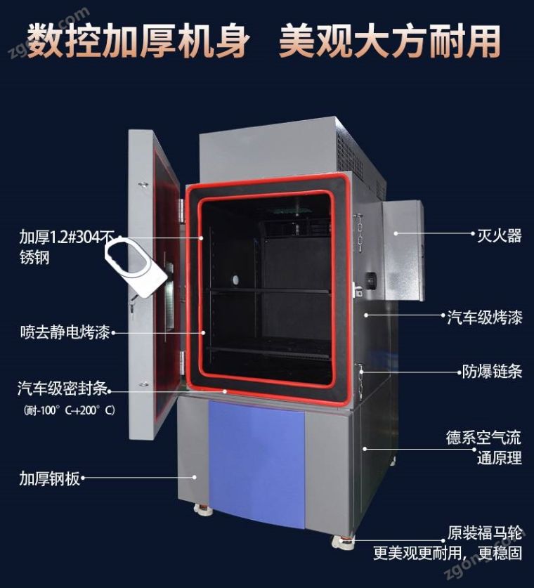 防爆高低温试验箱在多个行业中具有重要作用,能够有效评估产品在不好的环境下的性能,确保其安全性和可靠性。防爆设计设备采用防爆材料和结构,确保在测试易燃、易爆物质时的安全性;宽温范围能够模拟高温和低温环境,通常温度范围从-70°C到+150°C,甚至更广;精确控温采用高品质的温控系统,确保温度波动小,测试结果准确;安全保护配备多重安全保护措施,如过温保护、过电流保护、漏电保护等;耐腐蚀材料内胆通常采用不锈钢或其他耐腐蚀材料,确保设备在恶劣环境下的耐用性。真空干燥试验箱在科研、工业生产和实验室中具有广泛的应用,能够有效提高干燥效率并保护样品质量。选择合适的设备并正确操作,可以显著提升实验或生产的效率和可靠性。 防爆高低温试验箱广泛用于化工行业:测试化学品、溶剂等在较差的温度下的稳定性;电子行业:测试电子元器件、电池等在高温或低温环境下的性能;航空航天:模拟高空或太空环境,测试材料的耐温性能;汽车行业:测试汽车零部件在较差的温度下的耐久性。