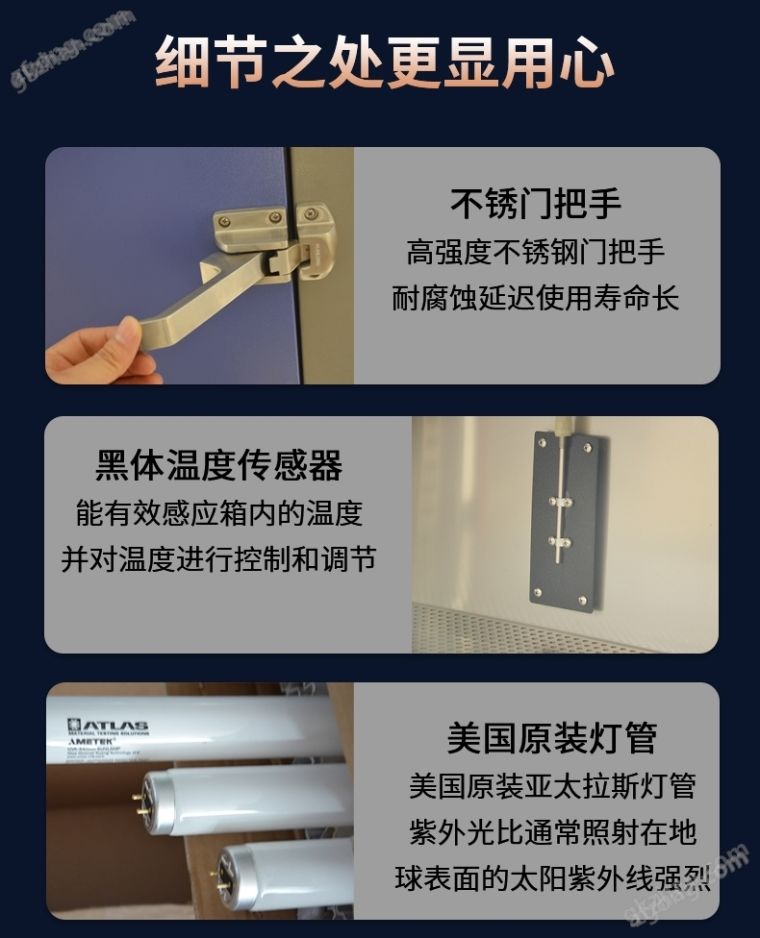 紫外线老化试验箱广泛应用于各种材料的耐老化测试,如塑料、涂料、橡胶、纺织品等。紫外线老化试验箱在材料耐候性测试中至关重要,选择合适的设备并正确维护,能有效提升测试效率和产品可靠性。 紫外线照射通过UV灯管发射紫外线,模拟太阳光中的紫外线辐射;温度调节通过加热元件和制冷系统调节箱内温度,模拟不同环境温度;湿度调节通过加湿器和除湿器调节箱内湿度,模拟不同湿度条件;样品暴露将样品放置在测试箱内,接受紫外线照射和温湿度调节,进行老化测试。 紫外线光源通常使用UV-A或UV-B灯管,模拟太阳光中的紫外线部分;温度控制可精确控制测试箱内的温度,模拟不同环境条件下的老化过程;湿度控制部分设备具备湿度控制功能,模拟潮湿环境对材料的影响;自动控制系统具备自动控制和数据记录功能,便于长时间测试和数据分析。 塑料行业:测试塑料制品在紫外线照射下的变色、脆化等老化现象;涂料行业:评估涂层的耐候性,如粉化、剥落等;橡胶行业:测试橡胶制品在紫外线照射下的硬化、龟裂等老化现象;纺织品行业:评估纺织品在紫外线照射下的褪色、强度损失等。