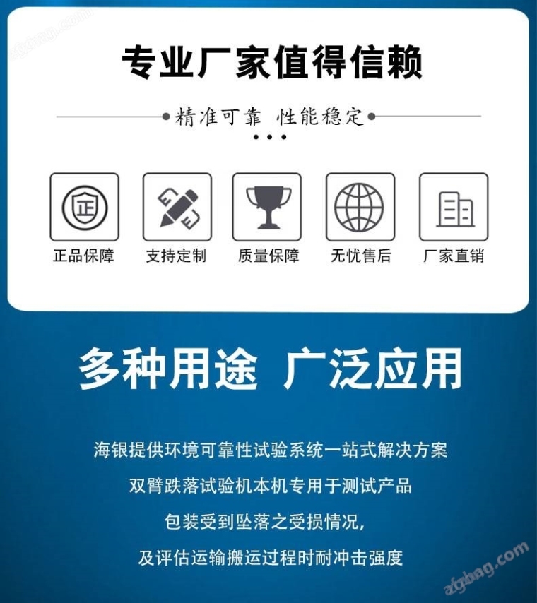产品介绍:它主要用于模拟产品在运输、搬运或使用过程中可能遇到的跌落情况,以评估其抗冲击能力和包装设计的合理性。双臂跌落试验机是产品质量控制和包装设计优化的重要工具,能够帮助企业提高产品的市场竞争力。 工作原理:将测试样品固定在双臂跌落试验机的夹持装置上;设置跌落高度和角度;启动设备,机械臂释放样品,使其自由跌落至冲击平台;记录测试结果,评估样品的损坏情况。 产品特点:双臂结构,设备配备两个机械臂,能够夹持测试样品,确保样品在跌落过程中保持稳定;高度可调,跌落高度可以根据测试要求进行调整,通常通过电动或手动方式实现;多种跌落角度,支持不同角度的跌落测试,如水平、垂直或倾斜跌落,以模拟实际跌落场景;自动复位,测试完成后,设备可以自动复位,准备下一次测试;安全保护,配备安全防护装置,防止操作过程中发生意外。 运用领域:包装行业:用于测试包装箱、托盘等包装材料的抗跌落性能;电子产品:评估手机、平板电脑等电子设备在跌落时的耐用性;汽车零部件:测试汽车零部件的抗冲击能力;玩具行业:确保玩具在跌落时不会对儿童造成伤害。