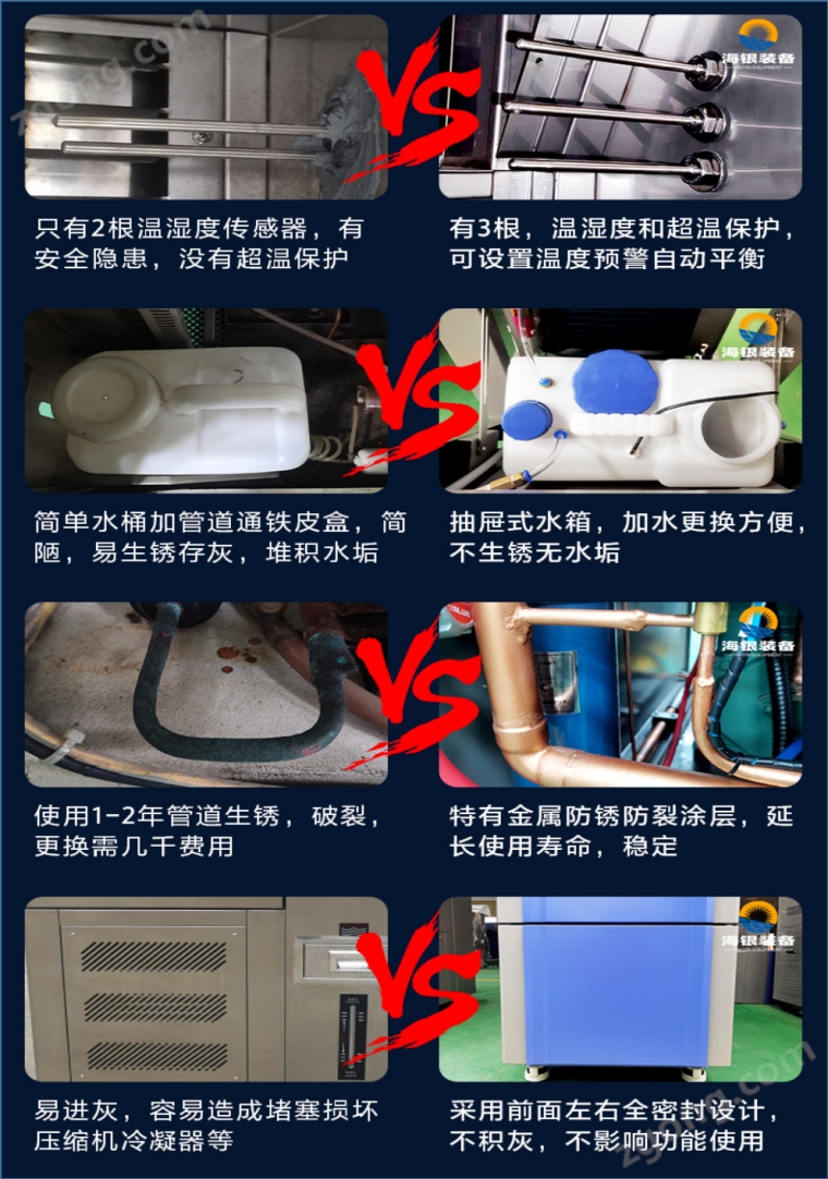 凭借过硬的技术支撑和完善的服务体系,海银装备获得多项关于可靠性测试装备的核心技术,公司先后与华为、中船重工、中科院、清华大学、比亚迪等企事业单位接洽与合作。海银装备坚持以臻至品质为发展方向,秉承“专注行业、按需定制、工匠品质、品质服务”的发展理念,积极为新老用户提供测试方案和测试装备,竭诚为用户的品质可靠性测试贡献海银力量。 冷热冲击试验箱制冷循环均采用逆卡若循环,该循环由两个等温过程和两个绝热过程组成。其过程如下:制冷剂经压缩机绝热压缩到较高的压力,消耗了功使排气温度升高,之后制冷剂经冷凝器等温地和四周介质进行热交换,将热量传给四周介质。后制冷剂经阀绝热膨胀做功,这时制冷剂温度降低。最后制冷剂通过蒸发器等温地从温度较高的物体吸热,使被冷却物体温度降低。此循环周而复始从而达到降温之目的,目前有两厢式和三箱式可供选择!