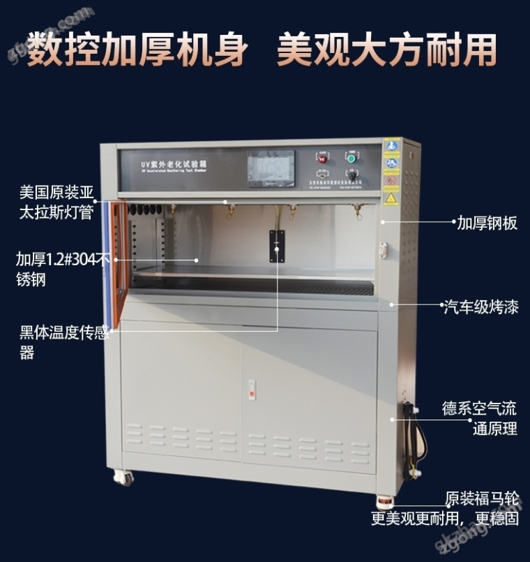 紫外线老化试验箱广泛应用于各种材料的耐老化测试,如塑料、涂料、橡胶、纺织品等。紫外线老化试验箱在材料耐候性测试中至关重要,选择合适的设备并正确维护,能有效提升测试效率和产品可靠性。 紫外线照射通过UV灯管发射,模拟太阳光中的紫外线辐射;温度调节通过加热元件和制冷系统调节箱内温度,模拟不同环境温度;湿度调节通过加湿器和除湿器调节箱内湿度,模拟不同湿度条件;样品暴露将样品放置在测试箱内,接受紫外线照射和温湿度调节,进行老化测试。 光源通常使用UV-A或UV-B灯管,模拟太阳光中的紫外线部分;温度控制可精确控制测试箱内的温度,模拟不同环境条件下的老化过程;湿度控制部分设备具备湿度控制功能,模拟潮湿环境对材料的影响;自动控制系统具备自动控制和数据记录功能,便于长时间测试和数据分析。 广泛运用于塑料行业:测试塑料制品在紫外线照射下的变色、脆化等老化现象;涂料行业:评估涂层的耐候性,如粉化、剥落等;橡胶行业:测试橡胶制品在紫外线照射下的硬化、龟裂等老化现象;纺织品行业:评估纺织品在紫外线照射下的褪色、强度损失等。 |