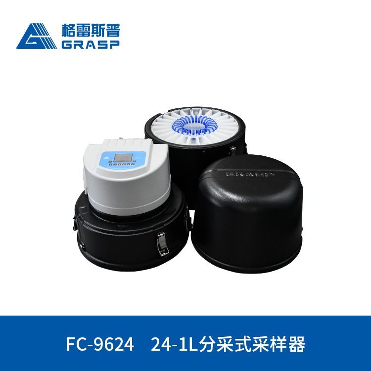 FC-9624型(便携式分采型)水质自动采样器是北京市格雷斯普科技开发公司推出的用于地表水和污水采样、对水源进行监测、开展污染源调查及总量控制的专用环境监测仪器。它采用国际上通用的蠕动泵取水方式,由单片机控制工作。用户可根据需要输入采样时间间隔、采样量及采样方式。它可在线自动完成相应的工作。配接流量传感器后,可实现污水计量、按流量比例采样的双重工作。 本仪表为便携式分瓶水采样器,配置DC12V-16.8V(标配外置大容量锂电池 14.8V 7.8AH)电源,适用于各级环境监测站,劳动卫生、科研院所对江,河,湖,海地表水或污染源等确定采样点后自动取水样用。 应用行业 用于各种水环境科学研究及环境监测站、水利水文、卫生防疫站 、疾控中心、高校、环评部门日常工作等一切需要便携采水的环境。 产品特点 24个1000ml采样瓶; 分配系统自润滑、定位自锁型; 彩色液晶显示屏,操作简单清晰; 采样蠕动泵管径大、流速快,可有效避免管路堵塞; 配置配置DC12V-16.8V(标配外置大容量锂电池 14.8V 7.8AH)电源; ABS外壳防护等级IP65,可在野外全天候使用,携带方便; 自主研发,模块化设计,高度集成,故障率低,维护维修简单方便; 可选配智慧云管理平台。 技术指标