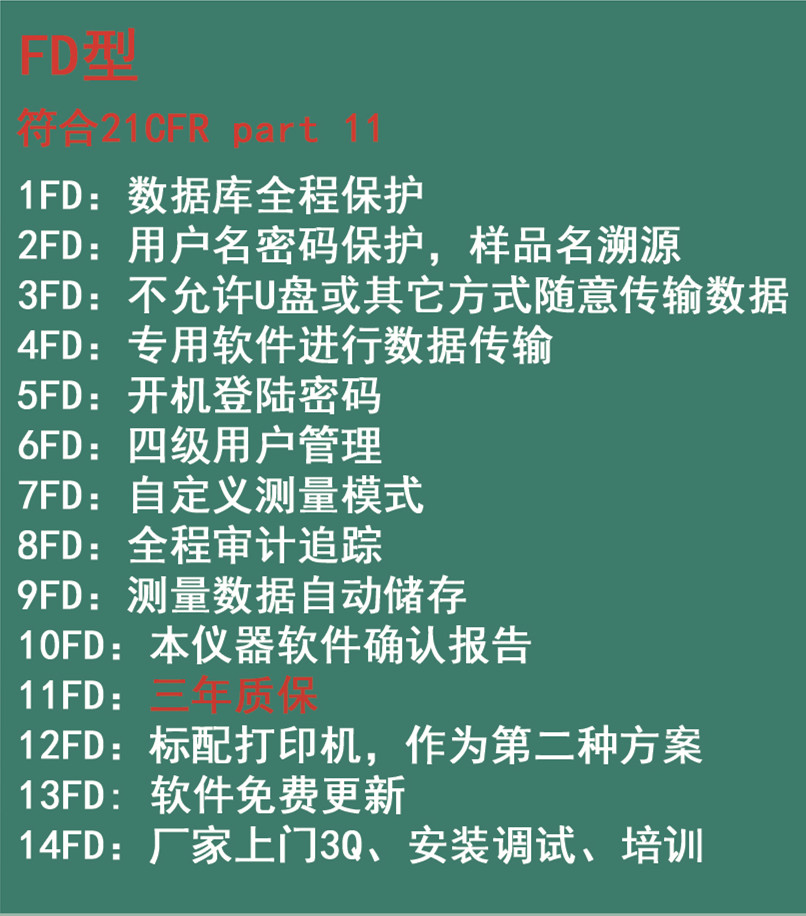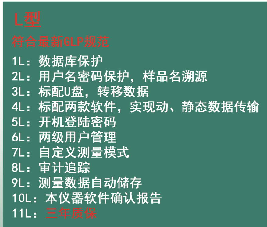 9个独特点: 》内置工控机 》升级防腐蚀材质 》超大的数据存储 》双储存,实时容灾备份 》维修日志 》气泡探测 》指纹识别 》软件升级&可同时稳定容纳8波长 》可接Lims,三年数据四备份,查询导出方便 | 型号参数 | IP800FD-Basic QC 应用 | | 测量范围 | ±90° | | 分辨率 | 0.001°/0.0001° | | 准确度 | ±0.004° | | 重复性 | ±0.001° | | 温度范围 | 0.00-100.00℃ | | 温度分辨率 | 0.01℃ | | 温度准确度 | ±0.02℃ | | 温度控制模式 | Peltier | | 温度控制范围 | 10.00 - 50.00℃ | | 温度控制准确度 | ±0.05℃ | | 灵敏度 | 可测透过率低达0.01% | | 棱镜 | 高级偏振片 | | 光源 | LED , 100000 hours | | 波长 | 可任选一种波长 (589nm, 365nm, 405nm, 436nm, 546nm, 578nm, 633nm, 880 nm ) | | 测量模式 | 旋光度,比旋度,浓度,糖度 | | 样品池 | 200mm及以下规格均可使用 | | 接口 | RS232×1, USB×3, 网络接口 | | 显示屏 | 10.4 inches touch screen | | 基础配置 | 主机 200mm 漏斗试管×1 100mm 漏斗试管×1 100mm 温控组件×1 insmark I型打印机×1 |