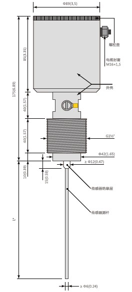 材质 探头(AISI 316 TI)不锈钢 主体(1.4305)不锈钢 探头绝缘PA 密封材料NBR(丁晴橡胶) 防护等级IP67 防爆等级(可选) Ⅱ 3G Ex nA Ⅱ T4 Ⅱ 3D Ex tD A22 IP67 T100℃ 安装螺纹规格 1 ½'' 电源17—31V DC 耗电量1.5W/ 24V DC 电气接口螺柱式接线端子 电缆密封套M16×1.5 电缆直径3.5—8mm 重量2,170g |  |