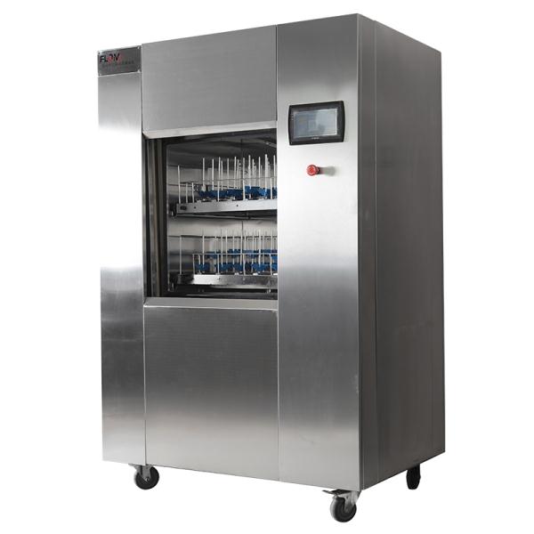 性能特点: 1、7.1寸LCD液晶触摸显示屏,RS232数据输出显示各种程序、运行阶段、温度以及机器故障。 2、RS232接口可以下载程序,方便工程师故障诊断和用户编程;可以连接打印机,打印清洗过程。 3、一键式操作,简单方便;8个自定义程序,8个可更改存储程序组。 4、标配两个蠕动泵,控制清洗剂加入量,并可根据用户需求调整(标配两个泵,可加至4个)(蠕动泵加剂能力360ML/MIN) 5、配有瑞士huba液位控制传感器,防止清洗舱中水和清洗剂缺失。 6、标配三个PT100温度传感器分别提供水加热、干燥、舱温显示。 7、自动故障诊断程序,蜂鸣器自动报警,仪器故障时屏幕会显示故障信息,提示发现问题位置并方便工程师提供维护;仪器还提示警示信息,提示用户及时处理。 8、提供符合国际标准EN ISO 15883-1/2规定的93℃热消毒。 9、可连接冷水、热水或去离子水三种水源,设备为双路进水,连接的冷水、热水或去离子水,根据程序设计从不同的水源进水,加快清洗速度,节约能源。 10、外部采用304拉丝板不锈钢材质,美观大方,防磨耐腐蚀,舱体采用AISI 316L不锈钢外部焊接制造,舱体圆角和斜坡底座设计,无死角避免污垢残留、及细菌生成。 11、标配三层不锈钢过滤网,有效截留污物,延长泵寿命。 12、双层绝缘门能够减少热损失和电的消耗,低噪音设计,噪音维持在50DB以下。 13、标配HEPA过滤器,清洁干燥空气。 14、独有的ESL电路控制技术,设备运行阶段禁止开门,需暂停当前运行程序或停止程序,方可打开舱门。 15、触摸屏操作,可选配USB端口,可插入U盘实时记录清洗过程中的各项控制参数,并可导出文本格式到电脑中,方便实验室对清洗过程的记录。 16、前置开门加药箱设计,方便用户更换。 17、PC远程连接控制技术,远程修改清洗参数,实现实验室危险品的清洗隔离。 18、安全门触控系统,灵敏感应,检测障碍,自动停止关门动作。 19、高温防护功能,40℃以上高温保护启动,自动门锁定,保障操作者安全。 20、自动开关门,齿轮连接,进口行程传感器,保证设备性能更稳定。 21、全透明玻璃视窗,清洗过程一目了然。 技术参数: 外部尺寸:1306X971X1898 清洗舱容积:456L 清洗舱尺寸:700X700X1114 清洗空间:360L 电源:380V/50HZ 额定总功率:12.5KW (MAX)噪音:65DB 工作环境:+5℃---40℃ 循环泵功率:2.2kw 循环泵流量:1200L/MIN 水加热功率:9kw 干燥风机功率:2.2KW 干燥加热功率:7.2KW 蠕动泵加剂量:360ML/MIN 产品优势: 1、HPS清洁系统: ·上下喷淋臂360°无阴影喷淋技术,带旋转速度感应功能,使更多更均匀的清洗溶剂流经清洗物件的表面,并有更强的冲洗作用力,获得更好的冲洗效果。 ·先进的H&D热干燥技术,采用台湾与鑫风机,大大提高清洗干燥效率,清洗实验无需等待。 2、循环泵: ·循环泵采用国际知名品牌瑞典Perfecta卫生级泵,循环量大,动力强,冲洗效果好,质量稳定可靠。 3、恒压切向喷淋技术: ·切向喷淋技术(玻璃器皿专用):清洗溶剂在一定的压力下以线状切向飞射冲洗物件内壁,对器皿内部残留物进行浸润、剥离,可获得Z好的冲洗效果。 ·针对锥形瓶、广口瓶清洗,采用新型圆形支架,保证清洗效果,且360°无死角。 4、Windows人机触控系统: ·采用PLC(微电脑可编程控制器CPU)控制技术,7.1英寸彩色触摸显示屏。高度人性化,即可直接在触控屏上设定各类运行参数,也能通过RS232接口直接在电脑上设定设备运行参数,极大地满足不同使用者对清洗的要求。 5、巧夺天工的设计: ·外部材质,304不锈钢;内舱舱体、内门开模,为316L不锈钢,边角做钝化处理,无焊接点、无缝隙、无拼接点,避免漏水、杂质沉淀及细菌的滋生。 ·内舱两侧隔层中各配一个蒸汽冷凝器,且两侧版面为316L不锈钢材质,避免水箱加热产生的饱和水蒸气外排污染室内空气,并回流到排水管道。 ·舱门为ESL电控自动电子安全门锁功能(开门停机),开门时需要暂停或退出程序,防止误开门操作,避免造成蒸汽伤害。 ·科学的排水设计,保证舱室洁净无死角,避免二次污染。 |