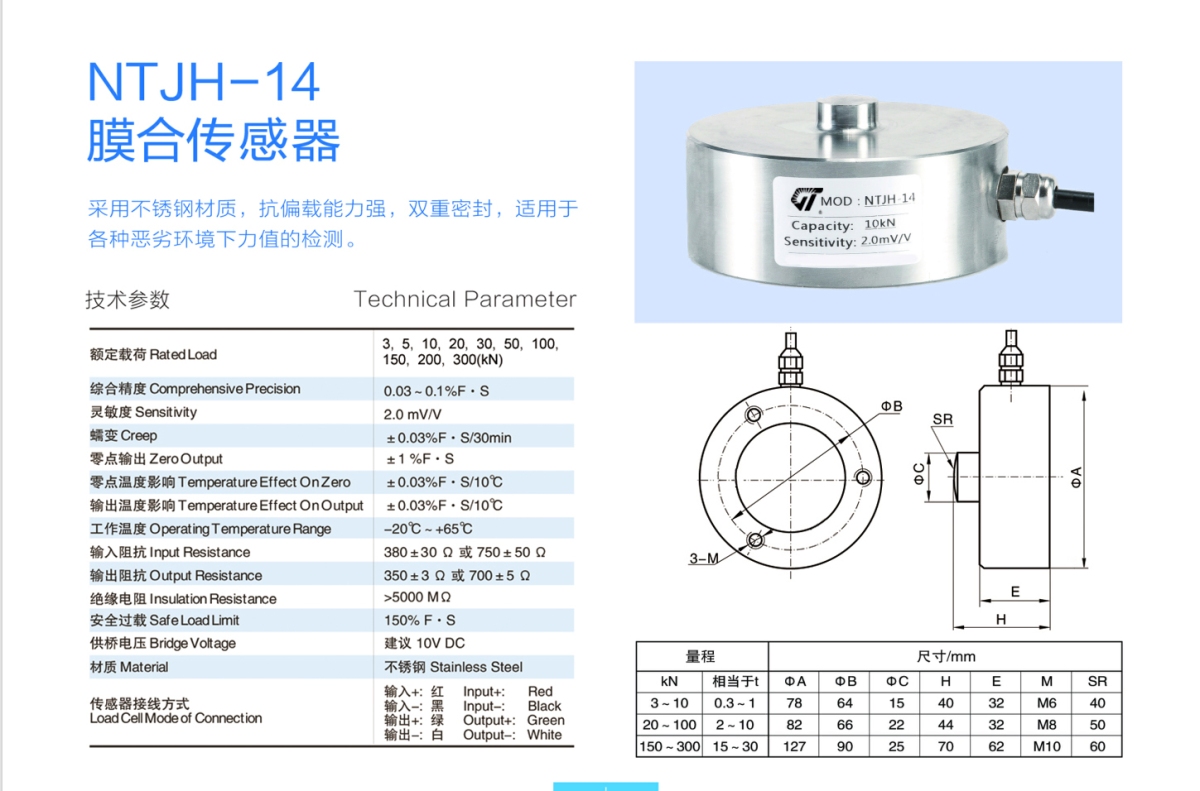 我对您的NTJH-14不锈钢膜合称重传感器产品感兴趣,请发具体的信息及报价,谢谢!