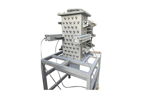 磁性抽屉除铁器被广泛应用在陶瓷、化工、塑料、橡胶、染料、矿业、环境保护等领域,用于干性的粉末状、片状、颗粒状等材料中清除铁磁性杂质,如白糖谷物,茶叶等。 产品特点: 1、除磁机箱体内采用套管根腔体内部满焊,从而杜绝抽屉除磁机磁棒抽插过程中夹带物料造成漏料的情况发生; 2、设备下方的分料阀(三通阀:正常排料和排铁装置)采用目前我司**研制的新技术(目前正在申报实用新型专利,审批中)该分料阀目前已经在电磁磁选机中应用,出货量已达千台。该新技术的特点是改良了原来挡板在转动时跟阀体内壁之间有缝隙从而会有漏粉漏料的情况。在挡板与阀体内壁接触端点做了一个梯度坡口,在与内壁接触时可以做到与内壁****的贴合,大大降低了漏粉的概率和数量。 3、分料阀下料口和包装接口处采用法兰加软连接的方式可以做到下料口的随时方向调节,减少硬链接过程中由于接口不对位从而产生的缝隙。 4、根据客户提供物料可以看出,该物料质量比较轻,粒径比较细,规模化下料时容易搭桥形成积料堵料的情况,为此我们在缓存仓位置增加了气锤,通过有规律的频率和适当的气压对缓存仓进行震动,让物料有序的向除铁器管道中流动。 5、在除磁机的管道腔内上方设置了2组气吹口共4个,管道腔内两侧设置了3组气吹口共6个。通过程序控制在排渣前将堆积在磁芯上的物料通过吹气的方式吹落,以确保除磁机管道内不堆积物料,正常排料和正常排磁性渣料的顺畅性,降低正常物料被浪费的概率。 产品参数: 可以根据客户现场实际情况,按需定制 |