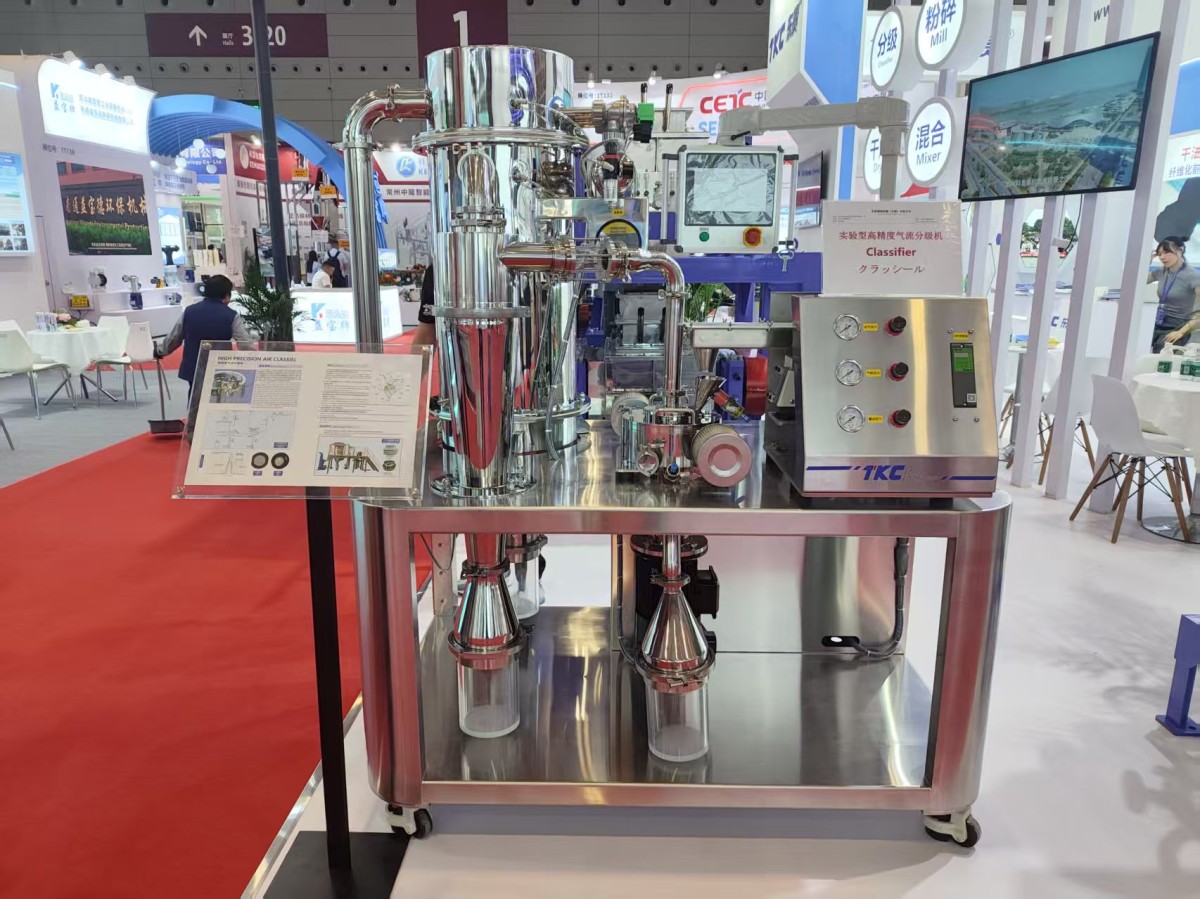 设备特点 适用于干法微米级产品的精细分级,可分级球状、片状、及不规则形状的颗粒,也可对不同密度的颗粒进行分级。 ●分级产品的粒度可达D97:3~150微米,产品粒度无级可调,品种更换极其方便。 ●分级效率(提取率)60%~90%,分级效率与物料性质以及符合粒度的颗粒含量有关,物料流动性好,符合粒度要求的颗粒含量高,效率就高,反之则低。 ●分级轮转速高,顶点切割准确。 ●可与球磨机、振动磨、雷蒙磨等粉磨设备串联使用,组成闭路循环。 ●控制系统采用程序控制,运行状态实时显示,操作简便。