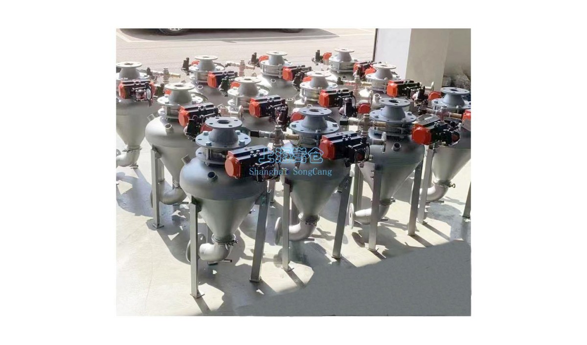气力发送罐又称仓泵,它是正压浓相气力输送系统中的核心部件,通常以密相、中相形式进行输送。发送罐输送系统的输送压力相对较高,固气比相对较高。广泛应用于输送粉料、粒料,尤其适用于流动性不好的物料长距离、高效率的输送。 一般特征 1)输送压力----可达6bar 2)输送能力----可达100t/h 3)输送距离----可达500米 4)出料口-------可旋转出口 5)高效率-------固气比超过20:1,高固气比代表高的输送效率 6)低磨损-------较低的气流速度降低了管道的磨损,也可避免脆性颗粒与管壁激烈撞击而产生破碎 7)低能耗-------采用压缩空气进行输送,耗气量少,运行成本低,性价比高 8)低维护-------系统中运动部件少,故障少,从而设备维护费用低 9)高环保-------密闭输送管线,粉尘不外泄,不受气候和外部环境条件的影响,避免物料受潮、污损等 其他选项 材质选择--------碳钢/304/316/内部涂层 温度选择--------常温型(范围-10-50°)/高温型 助流类型--------喷吹头/流化盘 管道增压--------无增压/带增压 组合类型--------多个发送罐可以串联、并联组合使用,从而满足用户不同的输送要求 工作原理 气力输送泵主要用于粉体输送,自动化程度高,利用PLC控制整个输送过程实行全自动控制。主要由进料装置、气动出料阀、泵体、气化装置、管路系统及阀门组成。仓泵输送过程分为四个阶段: 进料阶段:仓泵投入运行后进料阀打开,物料自由落入泵体内,当料位计发出料满信号或达到设定时间时,进料阀自动关闭。 在这一过程中,料位计为主控元件,进料时间控制为备用措施。只要料位到或进料时间到,都会自动关闭进料阀。 流化加压阶段:泵体加压阀打开,压缩空气从泵体底部的气化室进入,扩散后穿过流化床,在物料被充分流化的同时,泵内的气压也逐渐上升。 输送阶段:当泵内压力达到一定值时,压力传感器发出信号,吹堵阀打开,延时几秒钟后,出料阀自动开启,流化床上的物料流化加强,输送开始,泵内物料逐渐减少。此过程中流化床上的物料始终处于边流化边输送的状态。 吹扫阶段:当泵内物料输送完毕,压力下降到等于或接近管道阻力时,加压阀和吹堵阀关闭,出料阀在延时一定时间后关闭,从而完成一次工作循环。 典型案例