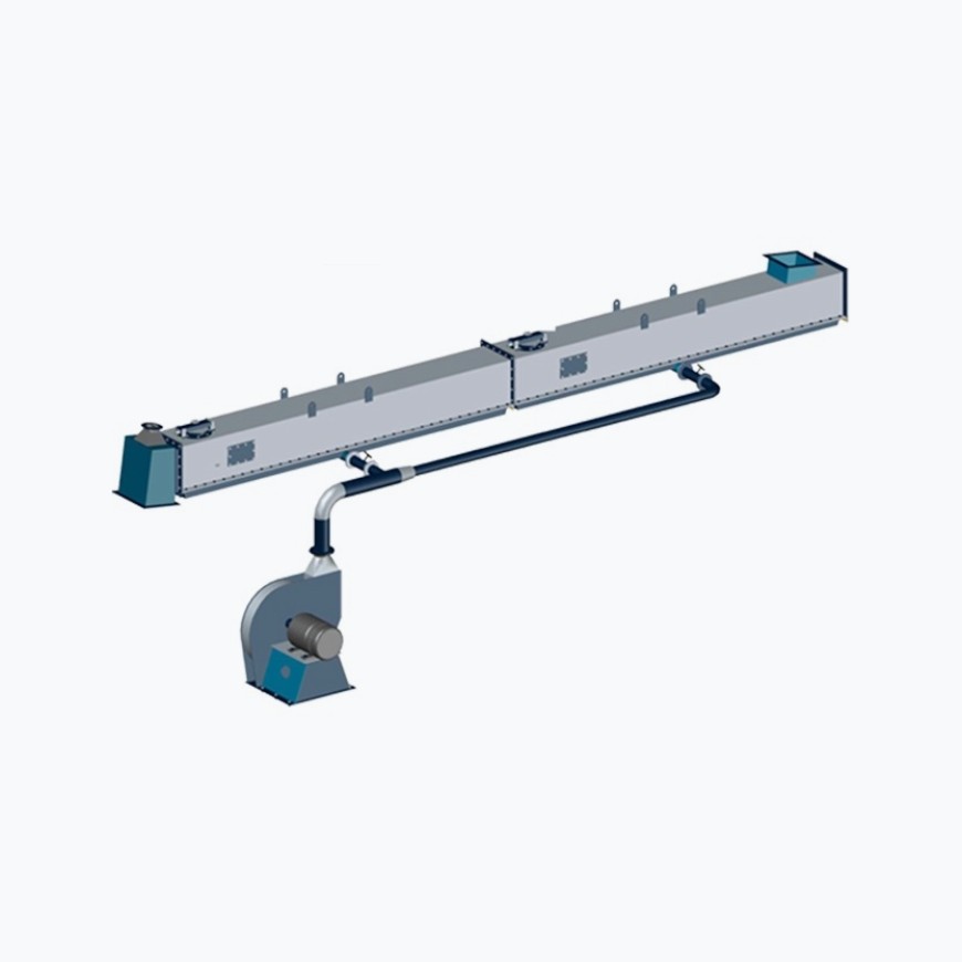 采用高压离心风机为动力源,使物料在密闭的输送斜槽中能保持流态化的向下倾斜的流动,从而达到输送水泥、粉煤灰等易流态化的粉状物料的目的,输送斜槽与其它的输送设备相比具有输送能力大,保证物料不受潮等等优点。输送斜槽以高压离心风机(9-19:9-26型)为动力源,使密闭输送斜槽中的物料保持流态化向倾斜向下的一端缓慢的流动。该设备主体部分无传动部件,密封操作管理方便,设备重量轻,电耗少,输送能力大,容易改变输送方向,采用新型涂沦透气层等等优点。空气输送斜槽是电厂、水泥厂、化工厂很好的输送设备。 空气输送斜槽包括六种槽宽规格(B200、B315、B400、B500、B630)、十种斜度规格(3°、4°、5°、6°、7°、8°、9°、10°、11°、12°),便于输送线路的设计和选用。 本机包括标准节9(长度为2000)、非标准节[长度为250n(n=1,2,......7)】、30°弯头(分左右两种,可布置成30°、60°、90°、120°四种、十型四通(一进三出)、T型三通(分左右两种,为一进二出)、进料节、截气阀、送风软管、控气阀、过滤器、窥视/观察窗、检修门/检修门组件、联接管、法兰罩等部件。