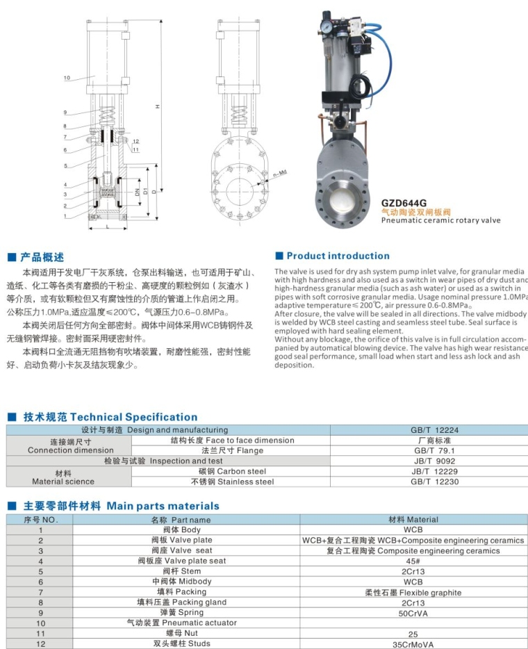 GZD644G气动陶瓷双闸板阀