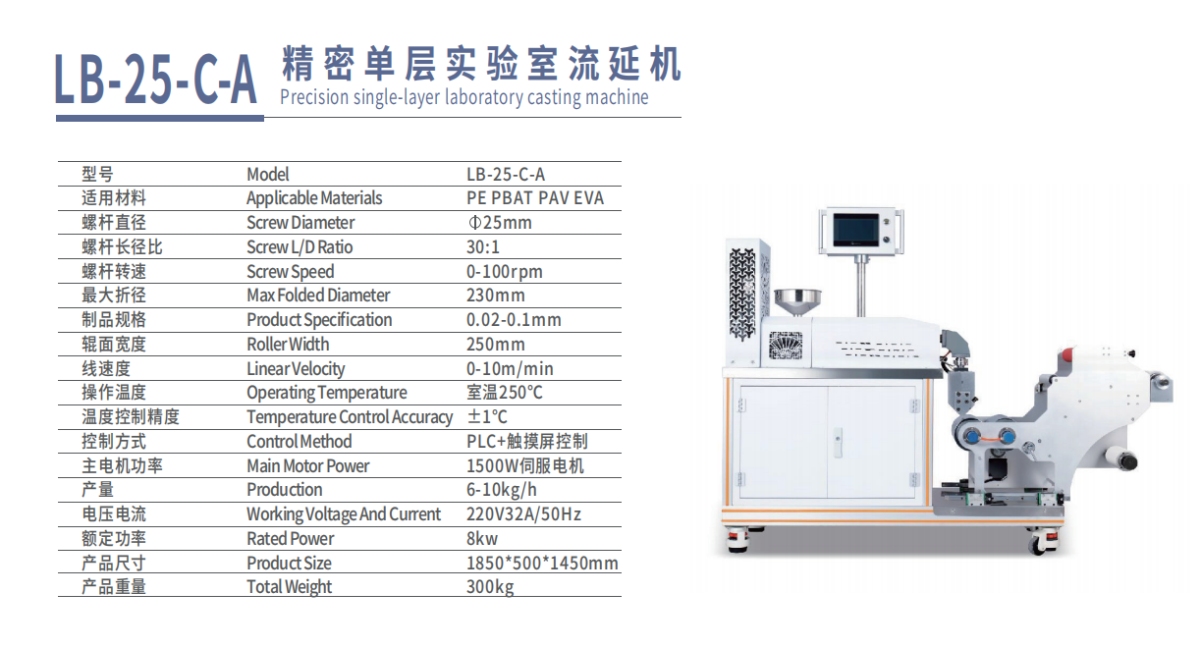 无论是生物降解材料研究还是功能性薄膜开发,LB-25-C-A流延机都能提供精准可控的工艺平台,助力科研与技术创新。