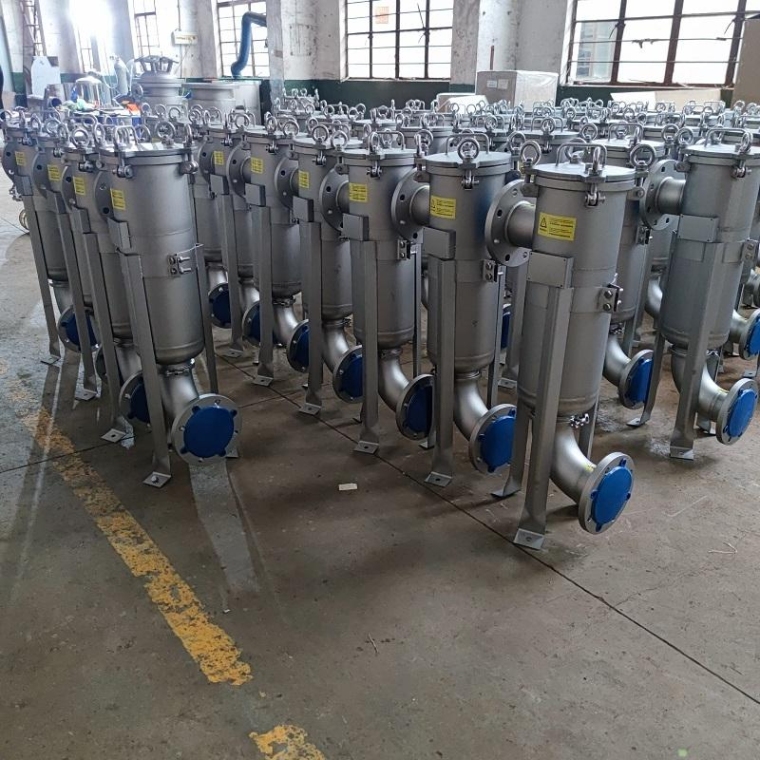 袋式过滤器的结构设计是由四套摇锤式环首螺栓将顶盖和滤筒密封锁紧,使过滤器更能承受极高的过滤压力和水锤式的压力冲击。袋式过滤器由滤筒,过滤网篮,过滤袋三部分组成,结构紧凑简单;要过滤的液体经过滤器的进口进入,流进过滤袋,经过滤袋的拦截后,由过滤器的出口流出。袋式过滤器的进出口设计一般采用侧进底出方式,方便清洗 技术参数