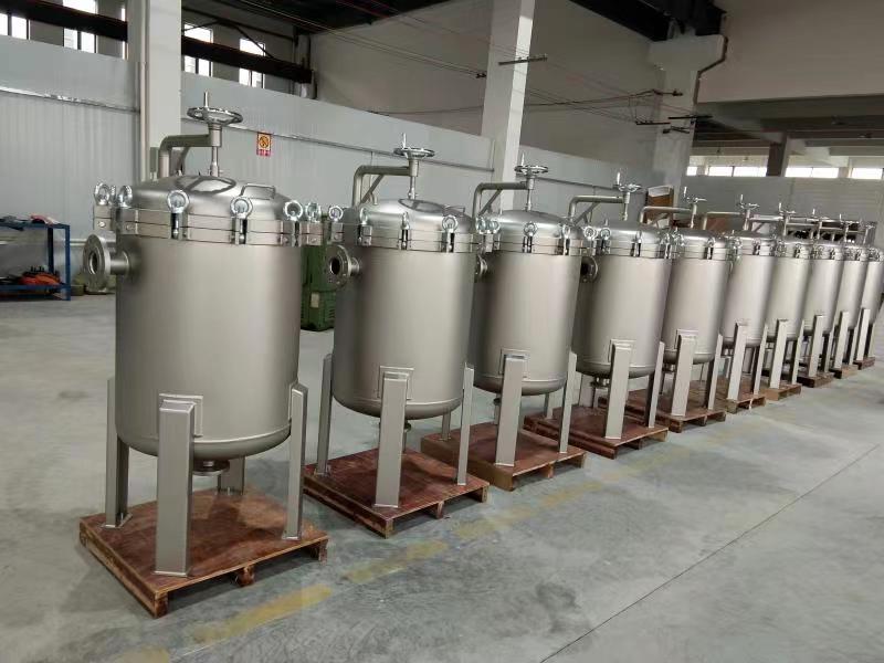 易滤袋式过滤机是一种压力式过滤装置,主要有过滤筒体、过滤筒盖和快开机构、不锈钢滤袋加强网等主要部件组成,滤液由过滤机外壳的旁侧入口管流入滤袋,滤袋本身是装置在加强网篮内,液体渗透过所需要细度等级的滤袋即能获得合格的滤液,杂质颗粒被滤袋拦截。该机更换滤袋十分方便,过滤基本无物料消耗。 袋式过滤器具备构造合理、密封性好、流通才能强、操作简便等诸多长处。尤其是滤袋侧漏机率小,能正确地保障过滤精度,并能快捷地改换滤袋,使得操作成本下降。滤器内外表面采取机械喷砂抛光解决,平均、易清洗。我们知道,袋式过滤器所采取的过滤方法是侧进侧出的方法,也可以采取侧进底出的方法,通过管道中的压力将过滤液体介质压入或抽入袋式过滤器桶体,要过滤的液体介质经由电抛光冲孔支持滤蓝承托的过滤袋的过滤,发生变化的固液分别到达液体介质被过滤的结果 技术参数