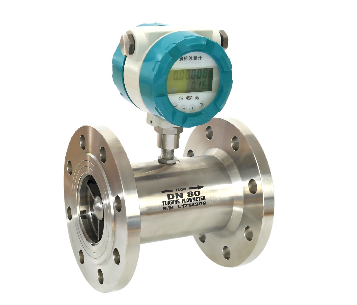 大量程 | 普通涡轮:80~800m3/h水,宽量程涡轮:40~800m3/h水 |