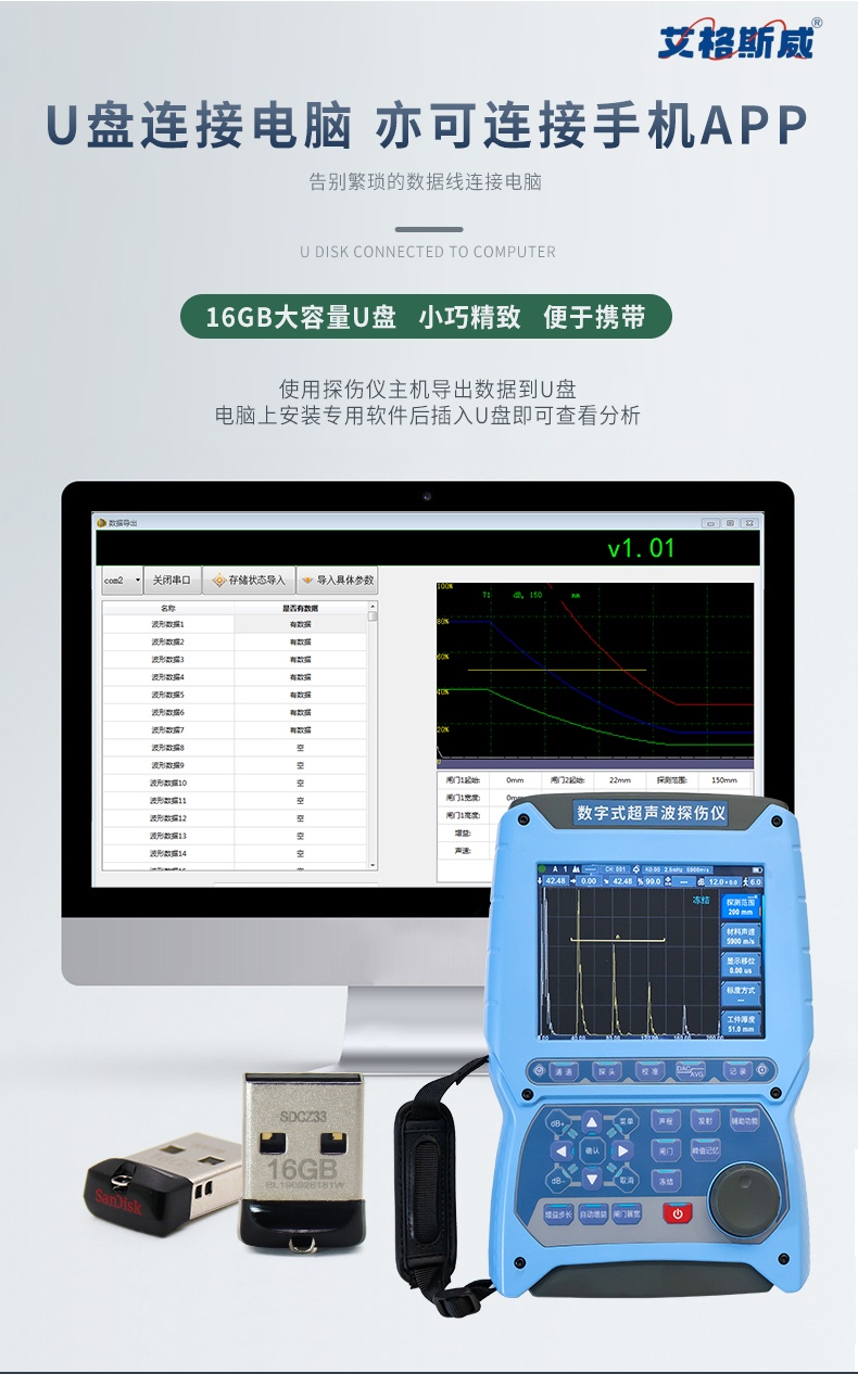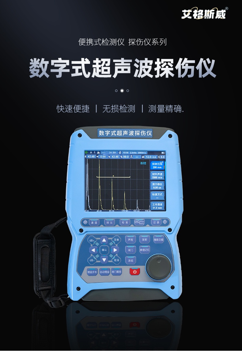 数字超声波探伤仪能够快速便捷、无损伤、精确地进行工件内部多种缺陷如裂纹、焊缝、气孔、砂眼、夹杂折 叠等的检测、定位、评估及诊断,广泛应用于电力、石化、锅炉压力容器、钢结构、航空航天、铁路交通、 汽车、机械等领域。它是无损检测行业的仪器。