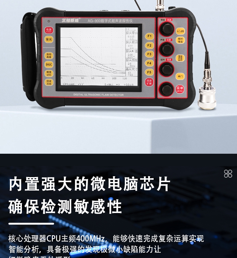 AG-900 数字超声波探伤仪能够快速便捷、无损伤、精确地进行工件内部多种缺陷如裂纹、焊缝、气孔、砂眼