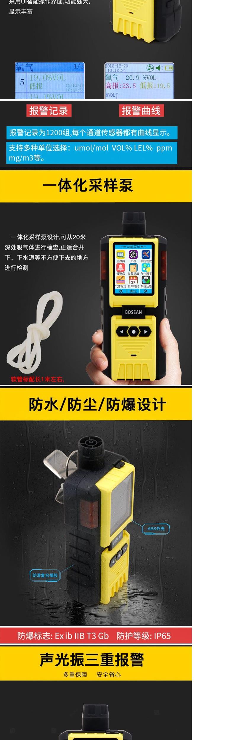 BH-4M四合一气体检测仪泵吸式可燃气氧气硫化氢一氧化碳