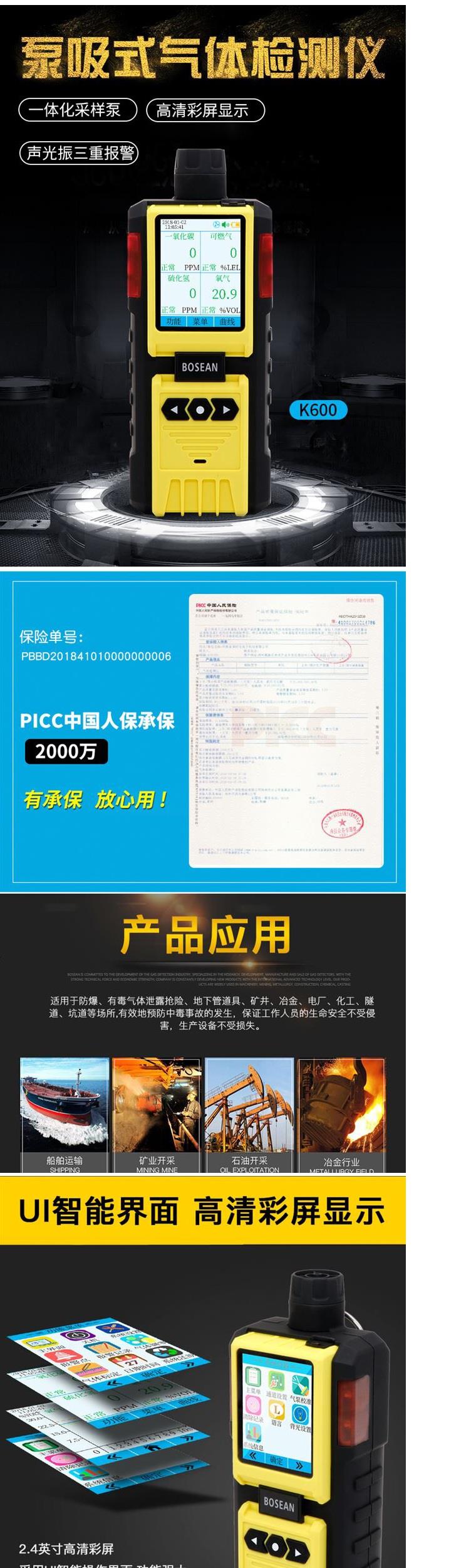 K-600四合一泵吸式气体检测仪便携式