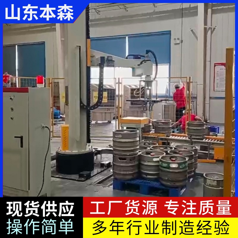 通过更换抓手或调整程序,可快速适应不同规格啤酒桶(如精酿啤酒小桶与工业啤酒大桶)的码垛需求。