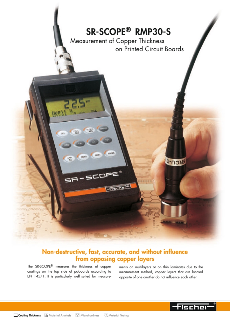 该便携式设备采用 4 点电阻法,十分适合测量多层电路板上薄镀层的厚度。这种电路板上的多层铜镀层通常被环氧树脂等绝缘体隔开。SR-SCOPE 的优势是利用电阻法测量不会受到其他层的影响,因此能够精确测定上层面铜层的厚度。特性: 易于使用的手持式设备,用于精确测量电路板上的镀层厚度 功能原理基于 4 点电阻法,符合 DIN EN 14571 标准 放入探头后即可自动开始测量 对小型和大型测量区域提供各种探头 应用: 电路板上的铜镀层 ERCU N 探头:0.1–10 µm 以及 5–120 µm ERCU-D10 探头:0.1–10 µm 以及 5–200 µm |