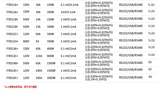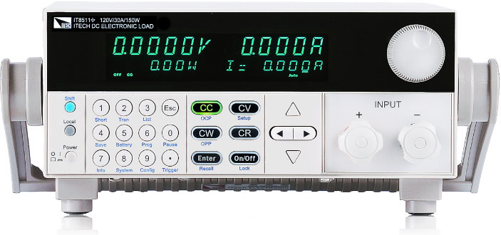 T8512+ (选配USB/RS232/RS485):120V/30A/300W IT8500+系列是单路输入可编程直流电子负载,拥有高密度体积,高分辨率和高精度,同时具有动态测试和自动测试等多种测试功能,可应用于LED driver测试,开关电源测试,电池性能检测等多个行业领域,也可以提供标准SCPI通讯协议,方便组建智能化测试平台应用于多个行业。