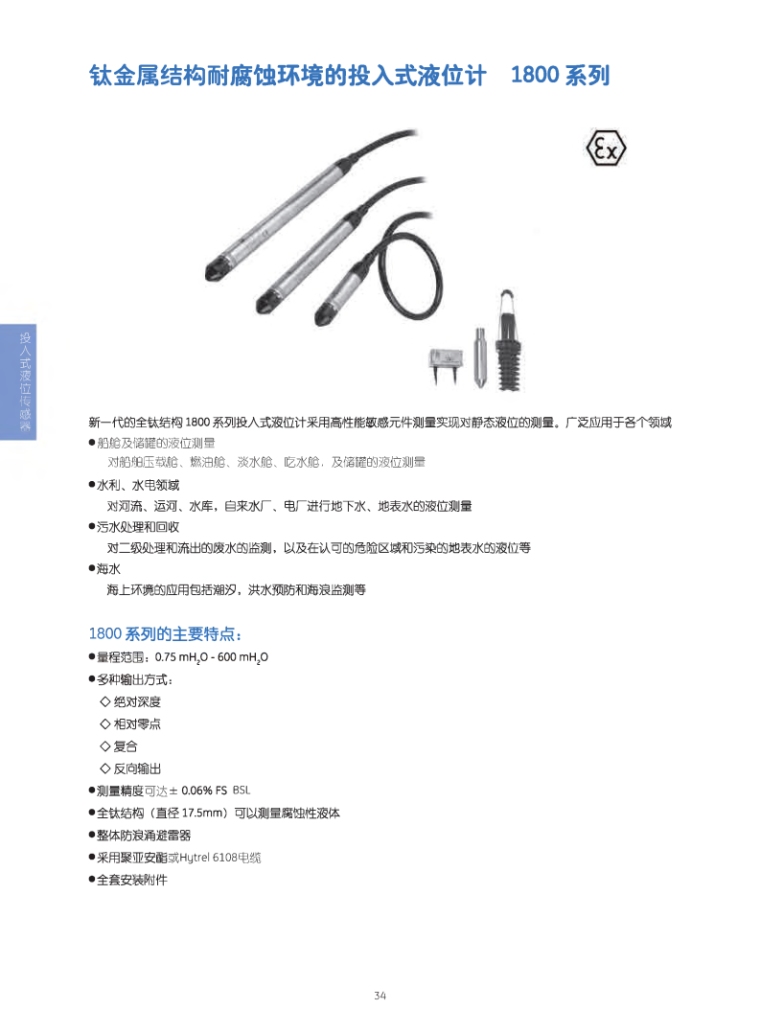 我对您的1800型钛金属结构耐腐蚀投入式液位计产品感兴趣,请发具体的信息及报价,谢谢!